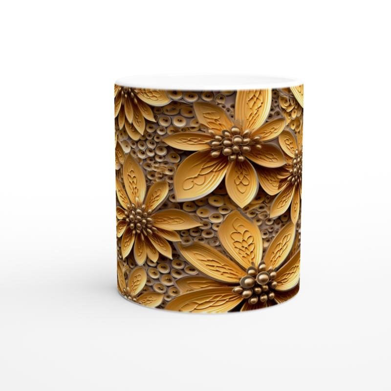 Altın Dokunuşlu Çiçekli Kupa Bardak, lüks dokusu ve derin çiçek desenleriyle kahve saatlerinize asil bir şıklık katıyor.