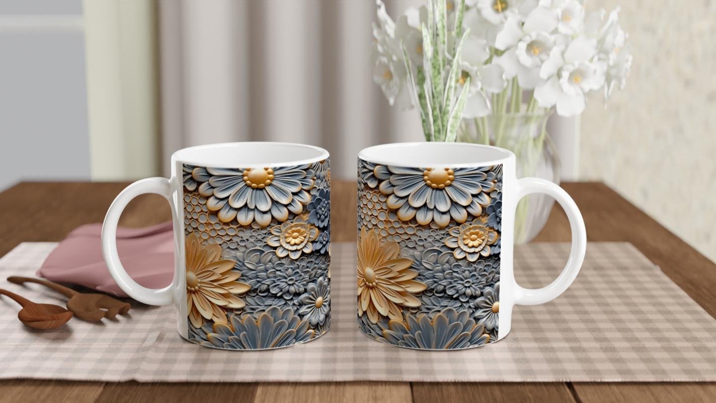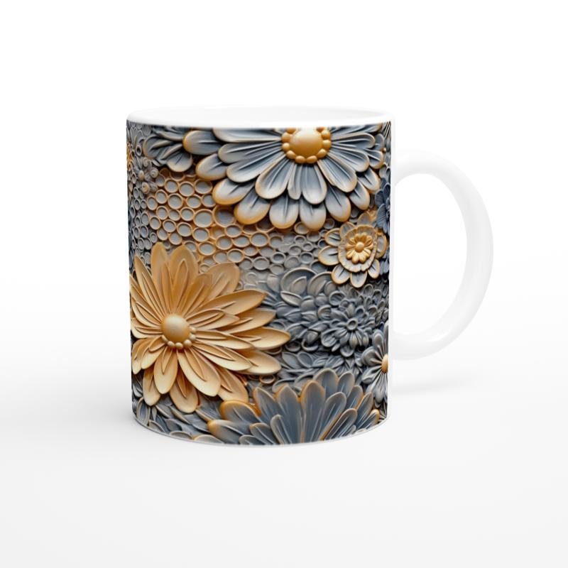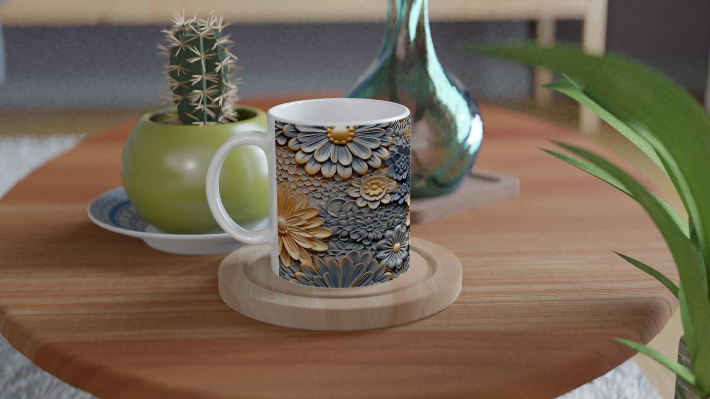 Kabartmalı yüzeyi ve üç boyutlu çiçek desenleriyle her yudumda estetik bir deneyim yaşatan bu kupa, ev dekorasyonuna da şıklık katıyor.