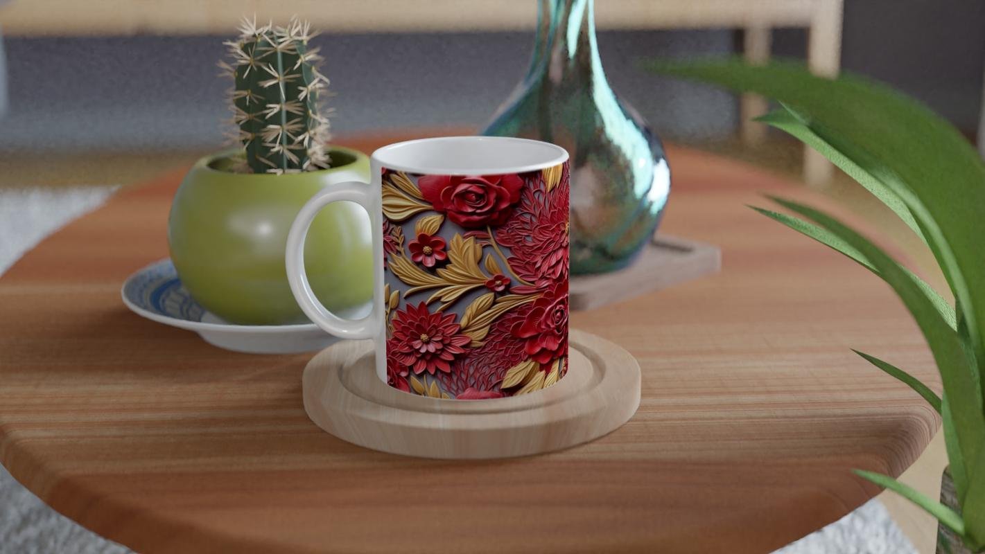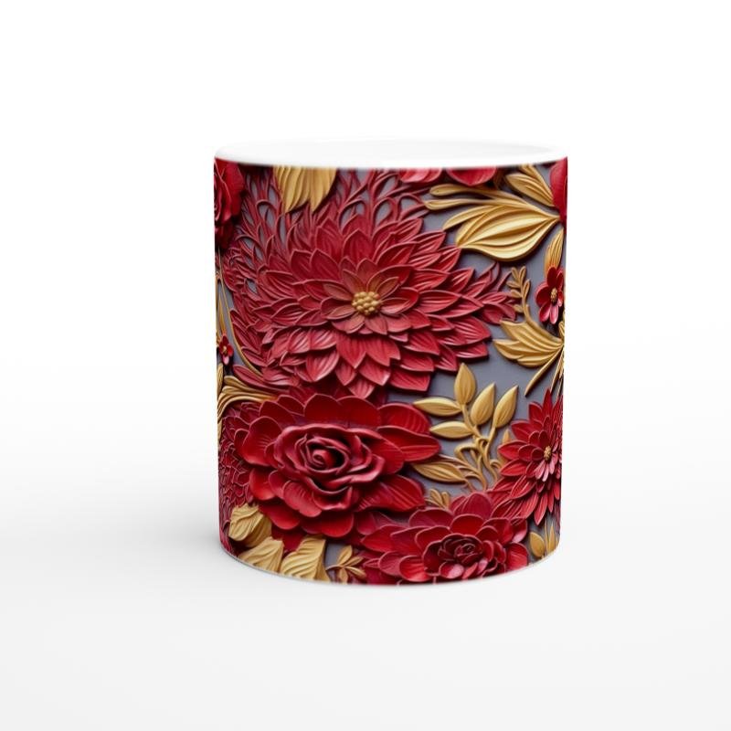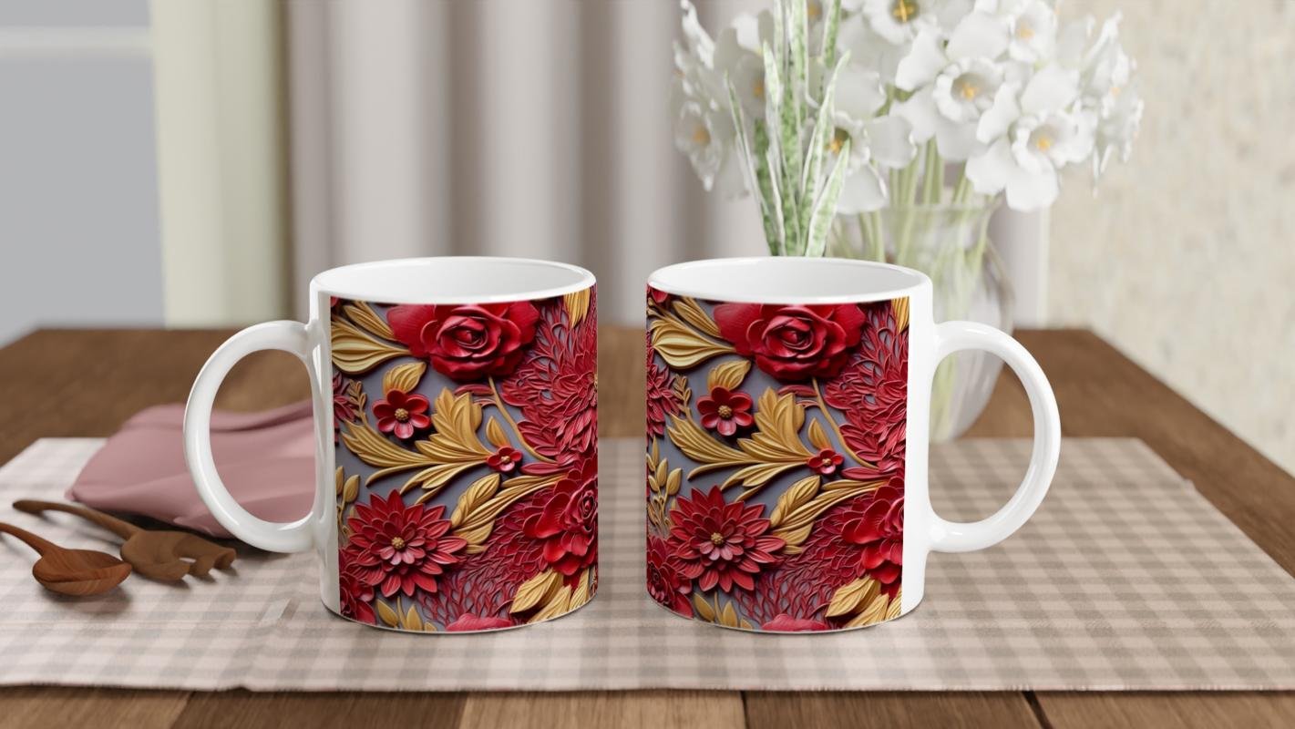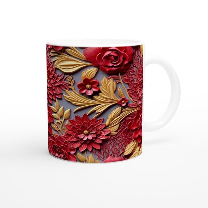 Altın Yapraklı Kırmızı Rölyef Çiçek Desenli Kupa Bardak, detaylı rölyef kabartmaları ve zengin renk paletiyle özel günlerin vazgeçilmez hediyesi olmaya aday. Şıklık ve zarafeti bir arada arayanlar için.
