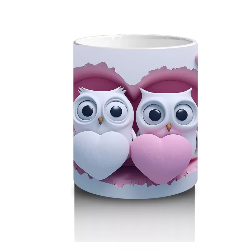 Kalplerle süslenmiş aşık baykuşlar, sevgi ve birlikteliği romantik bir şekilde yansıtıyor. Romantik ve duygusal detayları sevenlere özel sıcak bir tasarım.