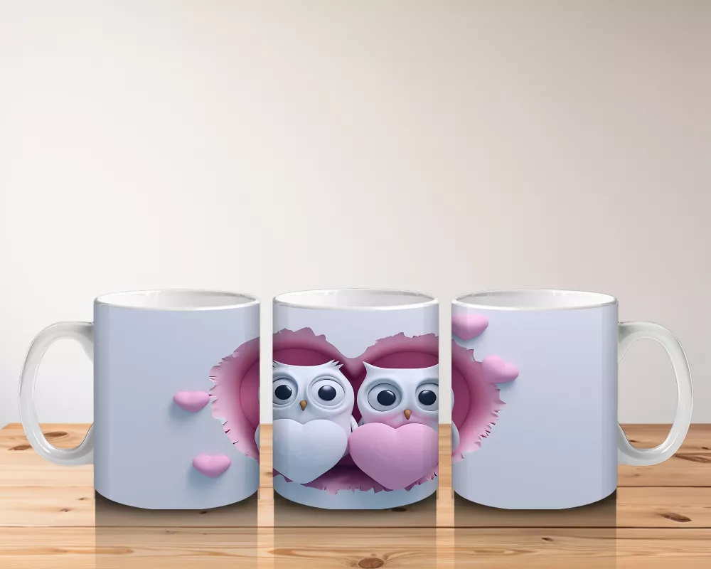 Aşık Baykuşlar Kalpli Kompozisyon – Baskılı Kahve Kupası