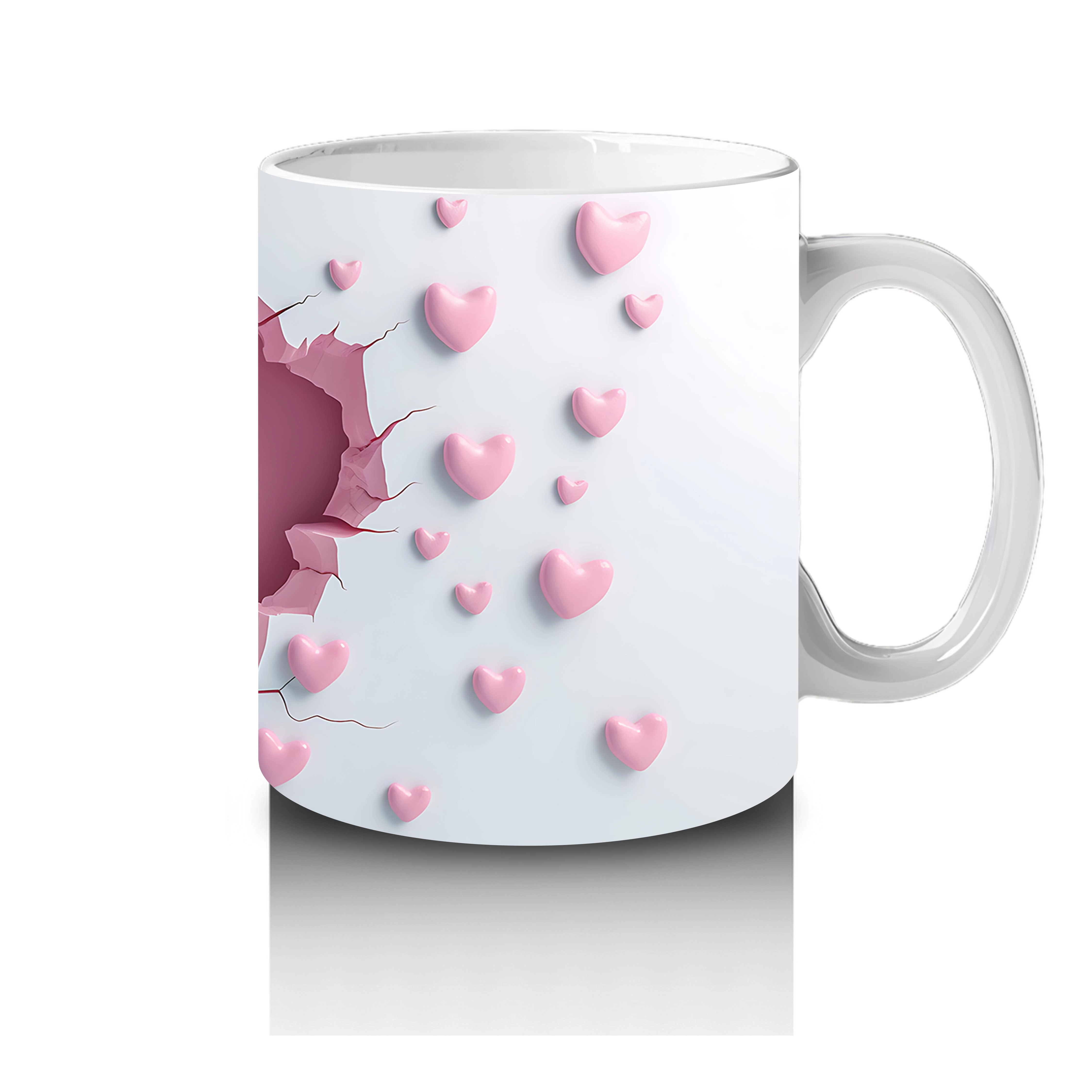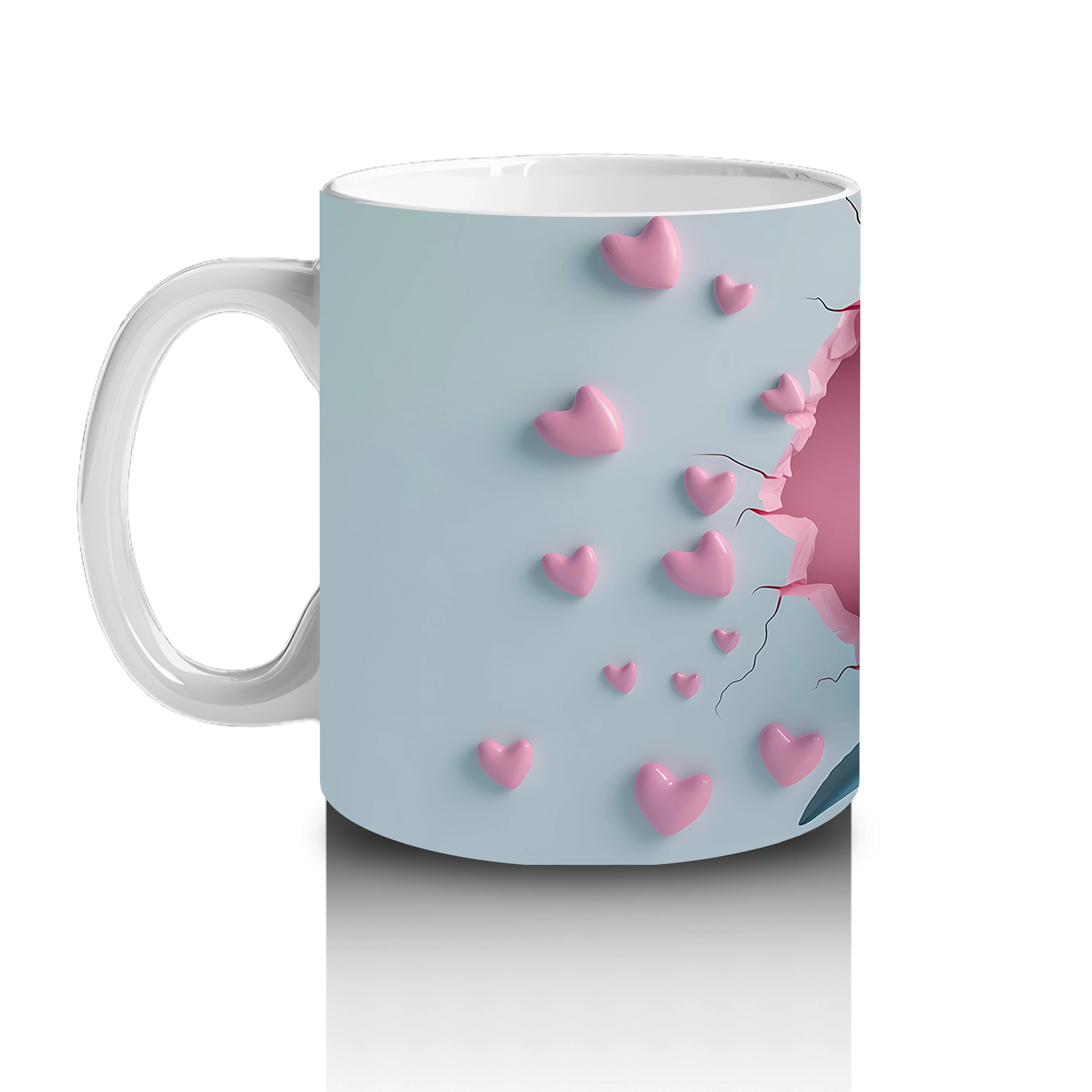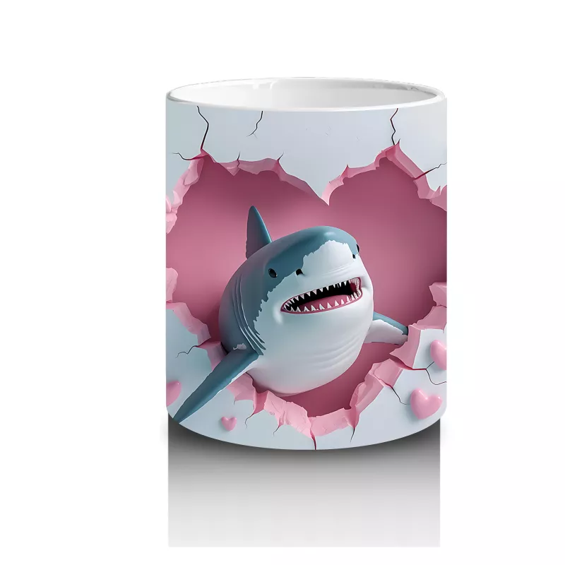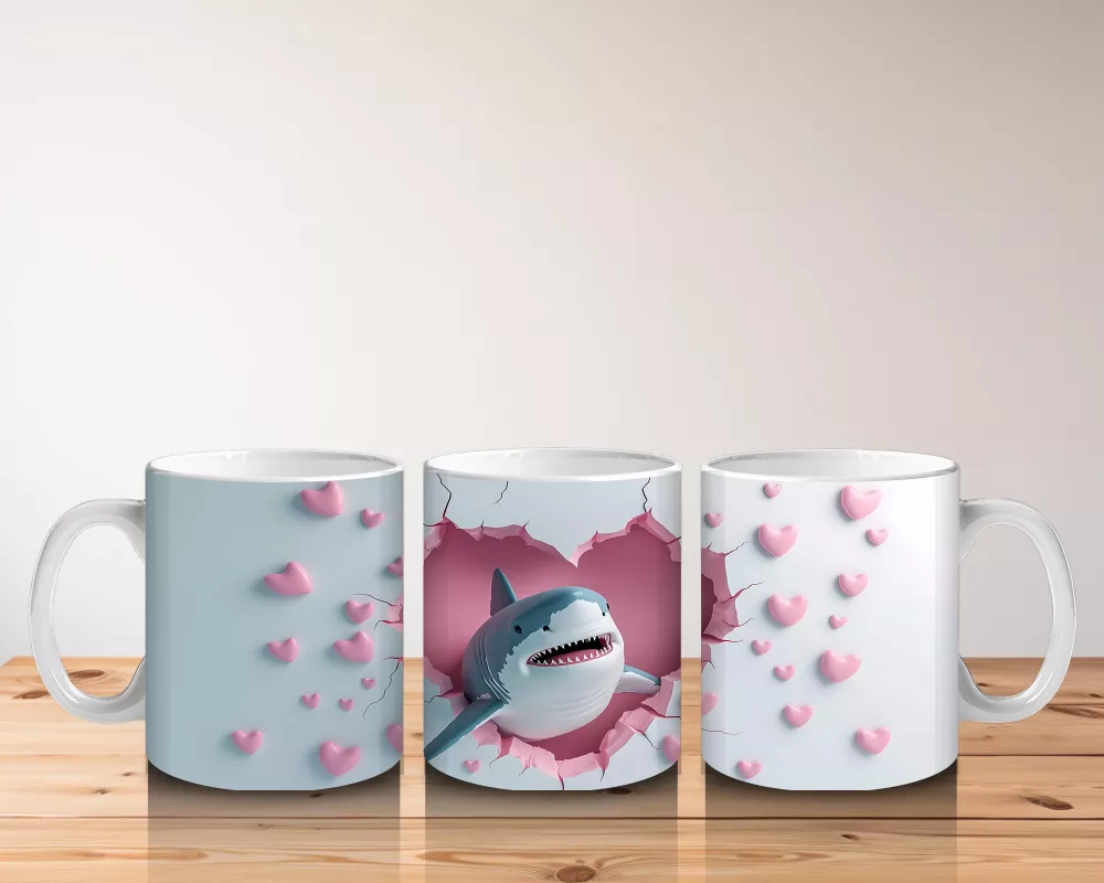 Kalp Yağmuru Altında Gülümseyen Köpek Balığı – Baskılı Kahve Kupası