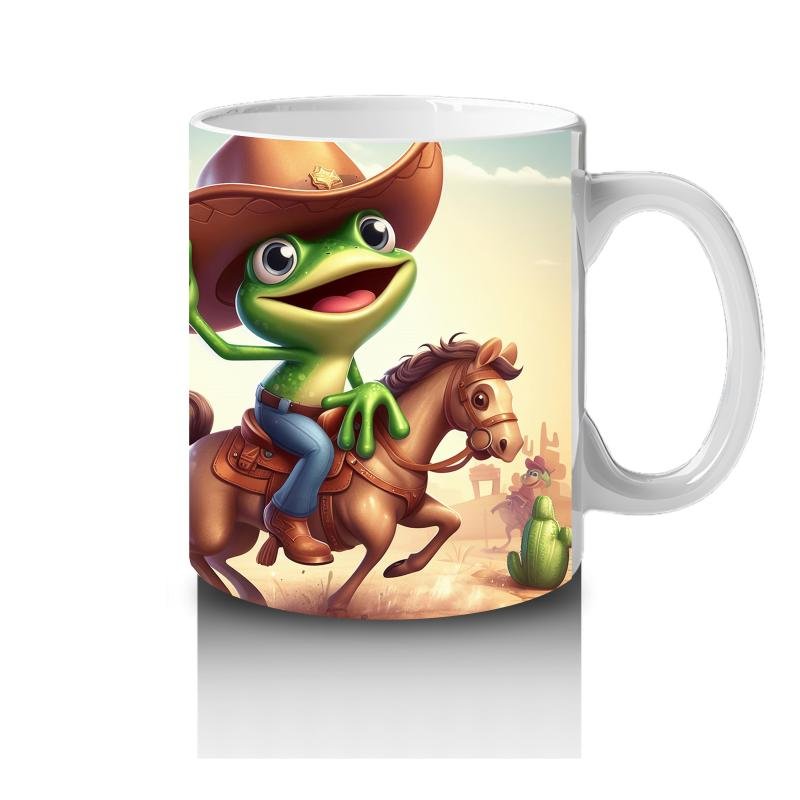 Çocuklara Sütü Sevdiren Atlı Kovboy Kurbağa Kupa Bardak