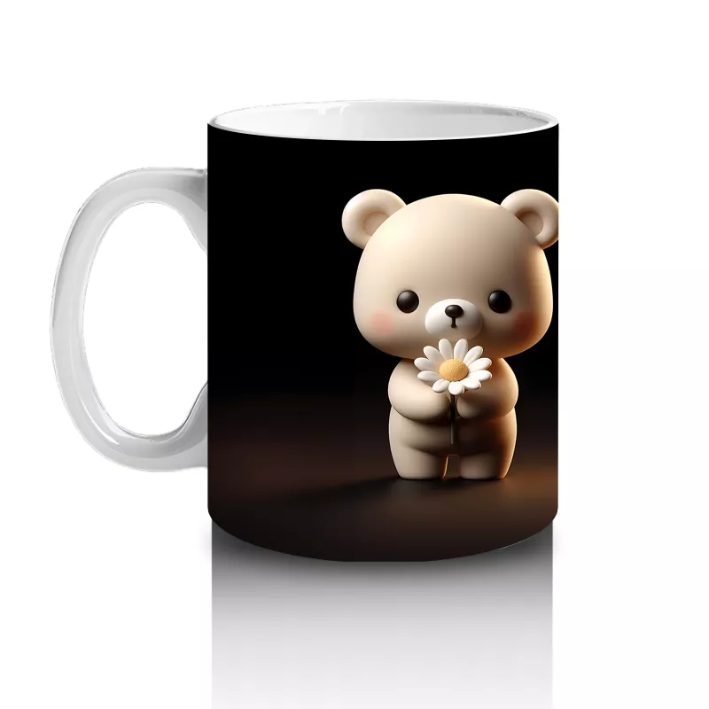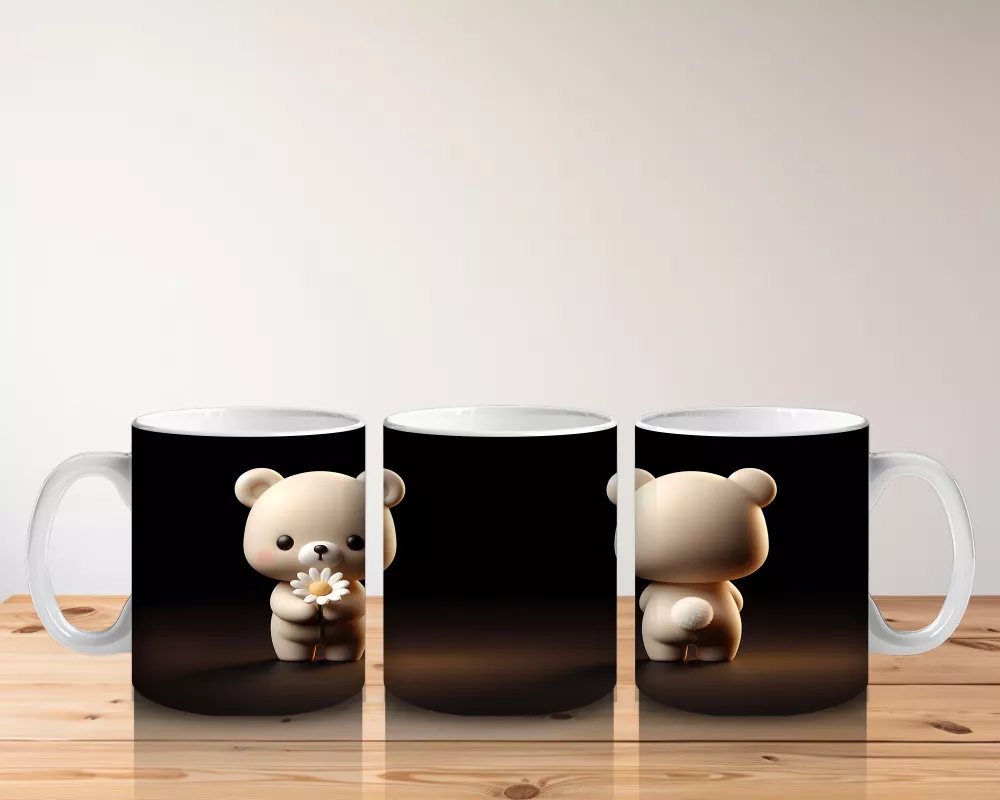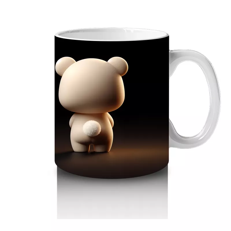 Karanlık arka planda duruşuyla dikkat çeken sevimli ayıcık, gizemli ve sıcak bir atmosfer yaratıyor. Sade ama etkileyici tasarımlar arayanlar için özel bir kupa.