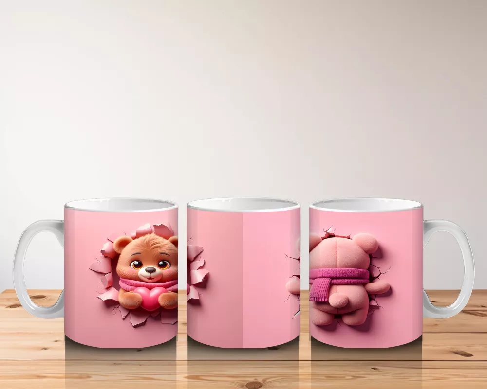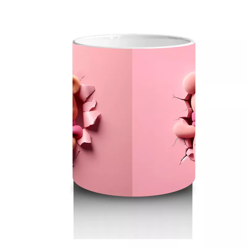 Pembe Fon Üzerinde Sevimli Ayıcık Yüzü – Baskılı Kahve Kupası