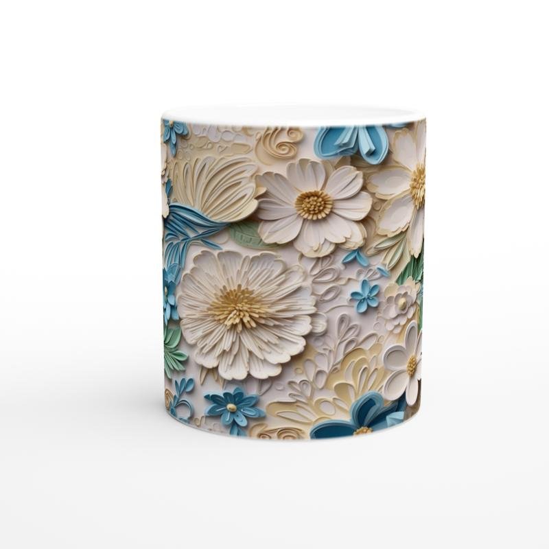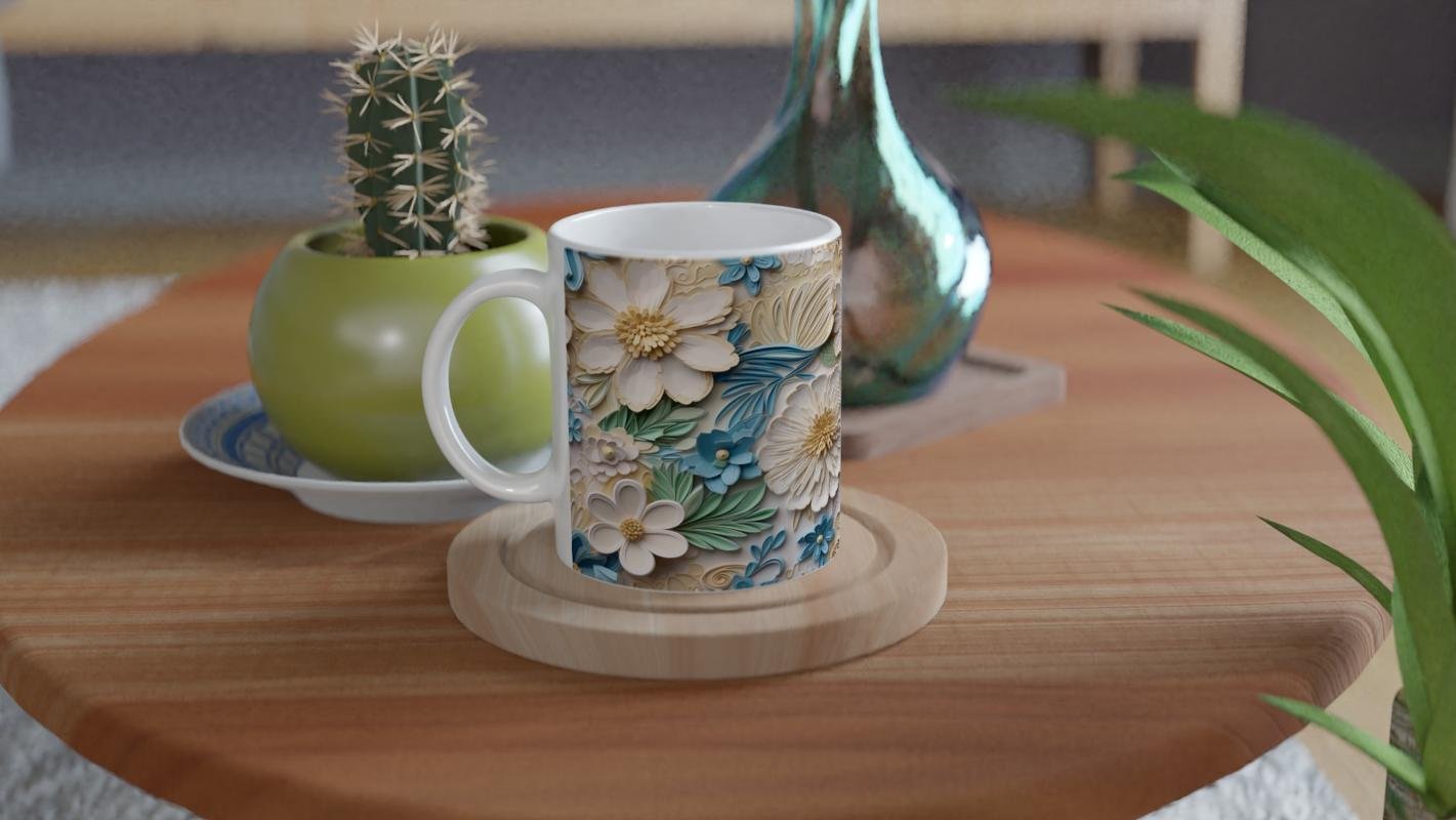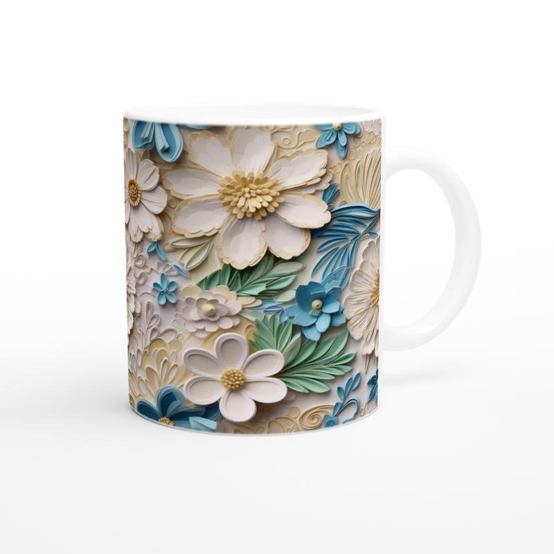 Baharı Fısıldayan Kağıt Çiçekli Kupa Bardak, 3D etkili zarif çiçek desenleriyle estetik ve doğal bir stil sunar.