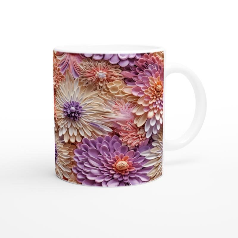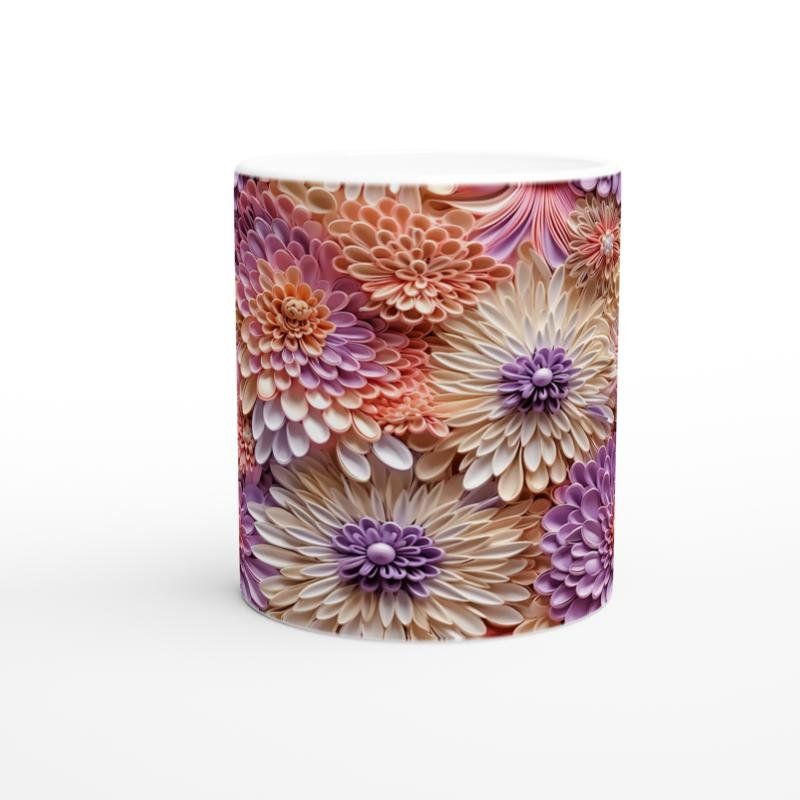 Pembe, mor ve krem tonlarının iç içe geçtiği bu çiçek desenli kupa, ilkbaharın taze enerjisini yansıtıyor.
