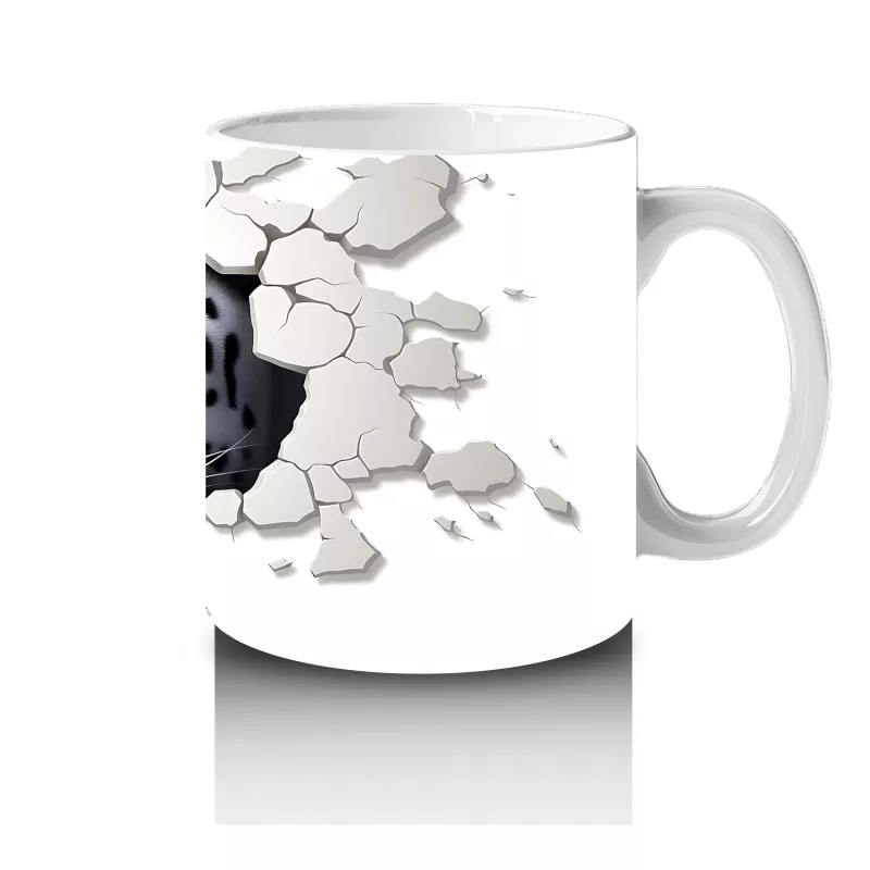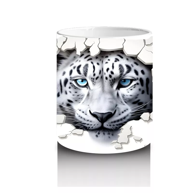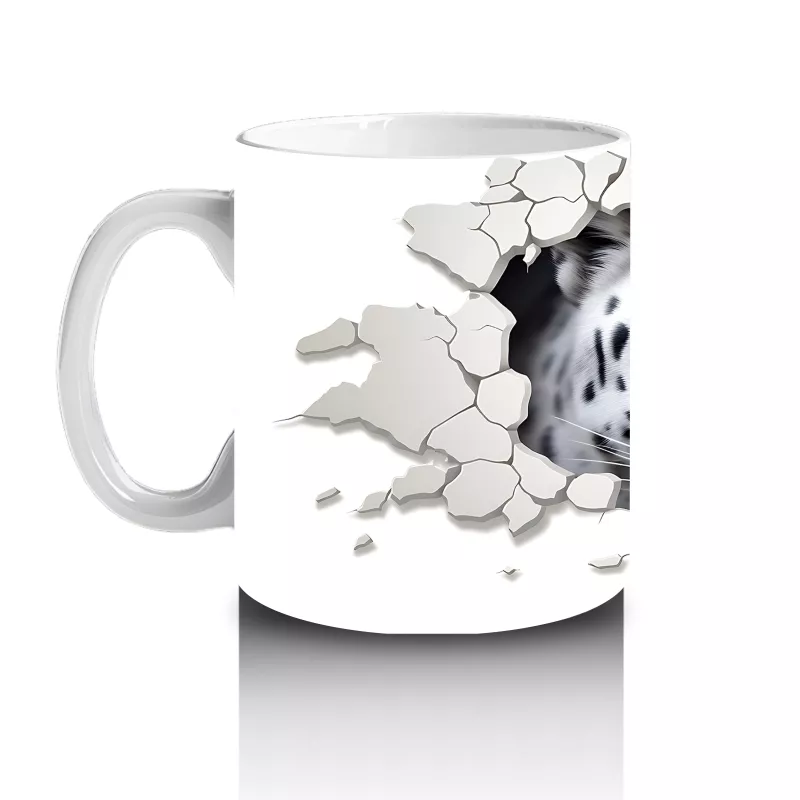 Çatlamış duvarın ardından dikkatle bakan kaplan, gücün ve sessizliğin birleşimini yansıtıyor. Vahşi doğanın görkemini yansıtan bu tasarım, cesur ve etkileyici bir kupa alternatifi.