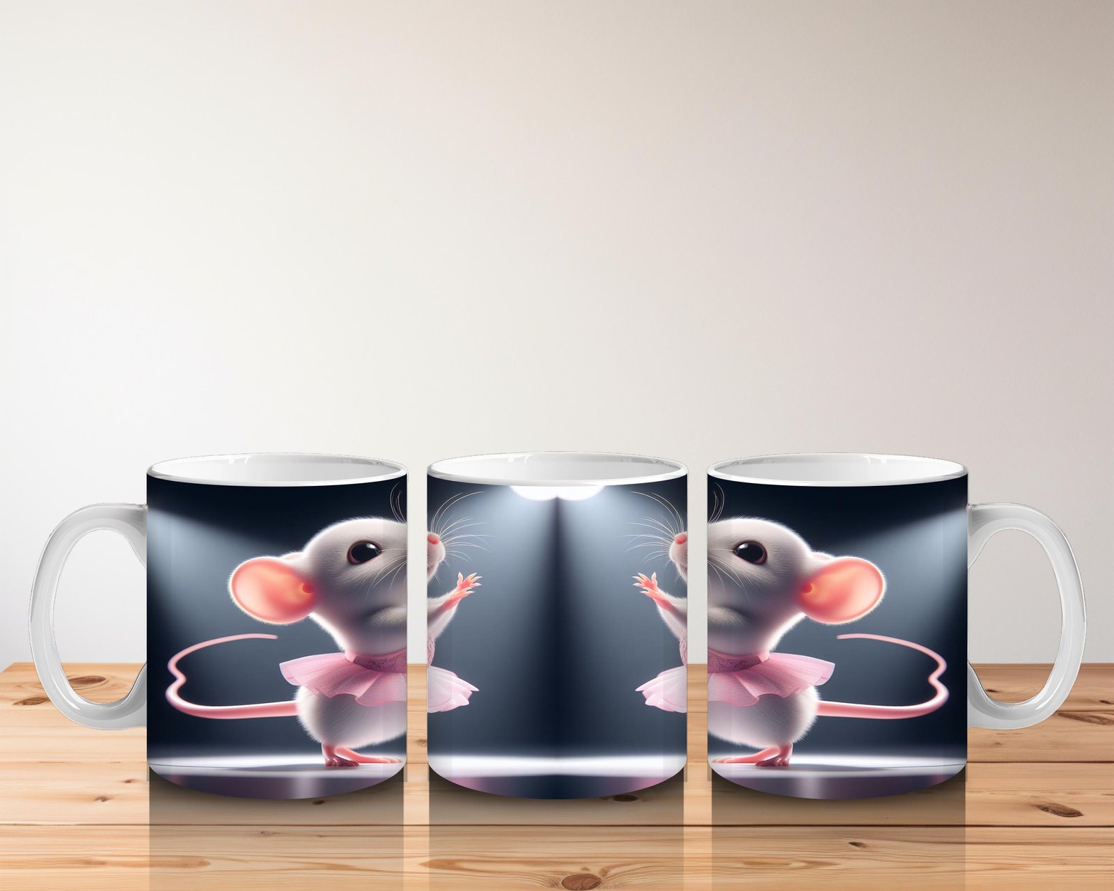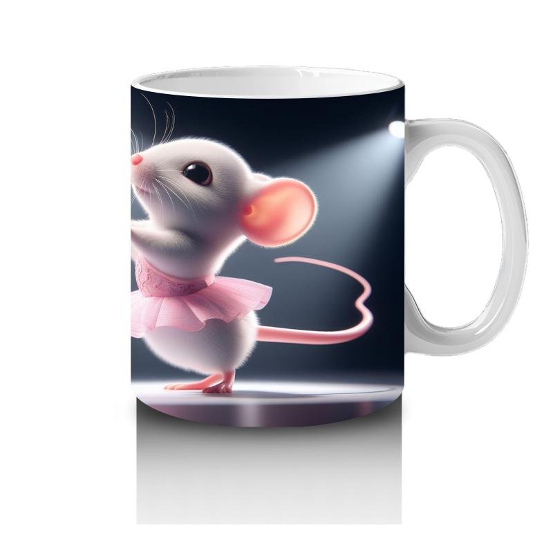 Çocuklara Sütü Sevdiren Sahne Işıkları Altında Bale Yapan Fare Desenli Kupa Bardak