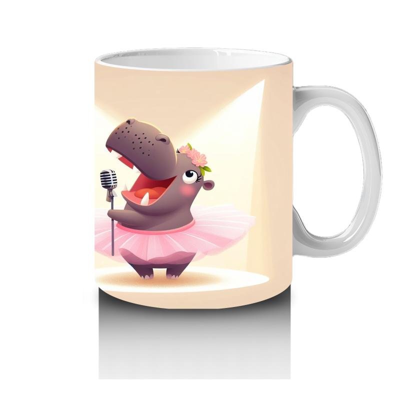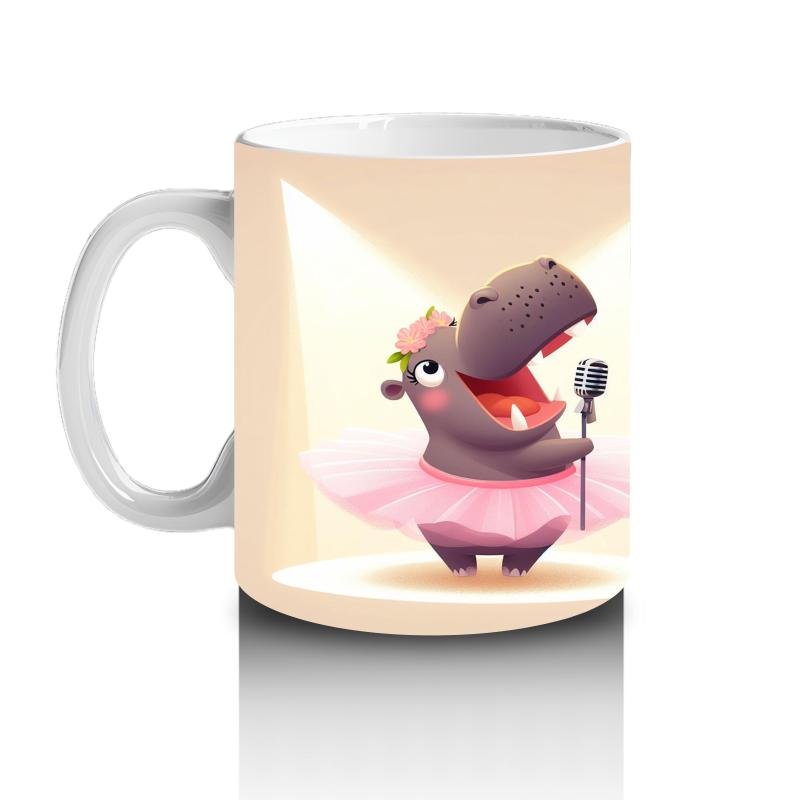 Çocuklara sütü sevdiren Mikrofonla Şarkı Söyleyen Balerin Su Aygırı Desenli Kupa Bardak tasarımlı kupa bardak. Neşeli, eğlenceli ve özel anlar için ideal hed…