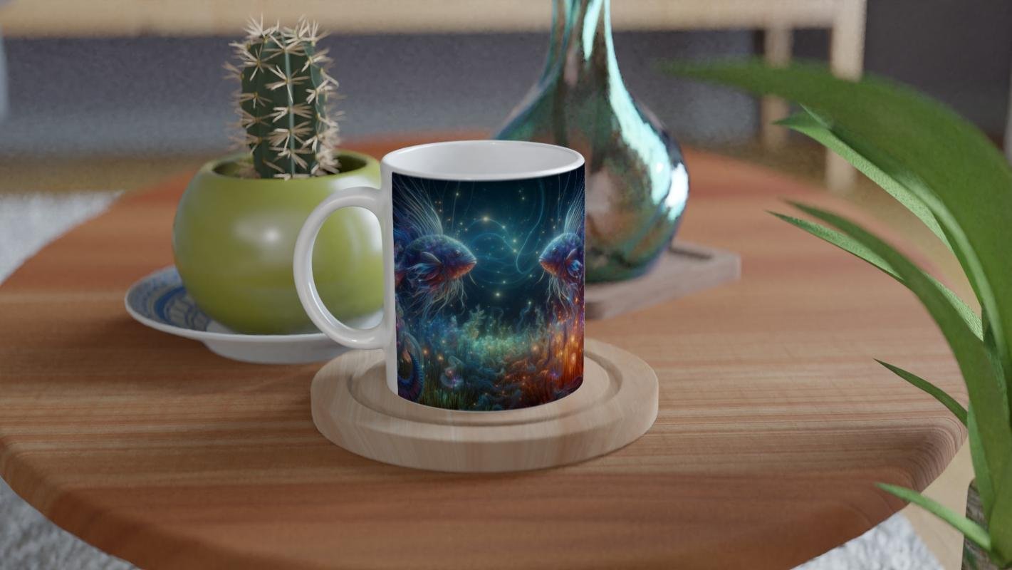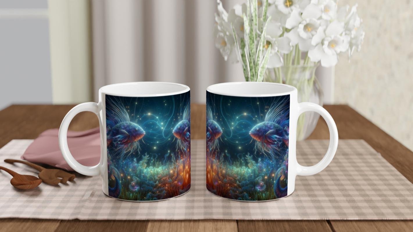 Balık Burcu Baskılı Kahve Kupası – Elementsel Doğa Krallığı Temalı Vs2