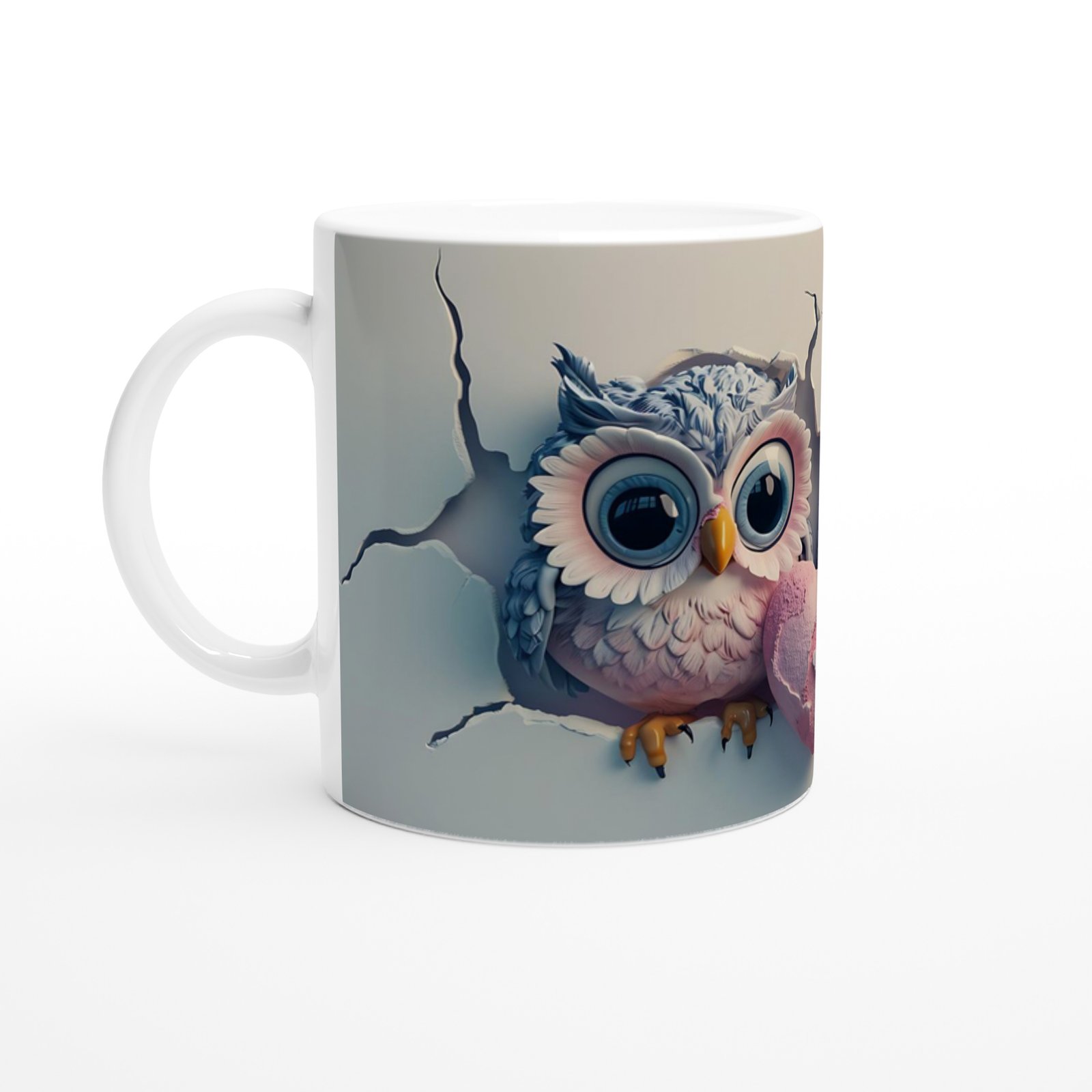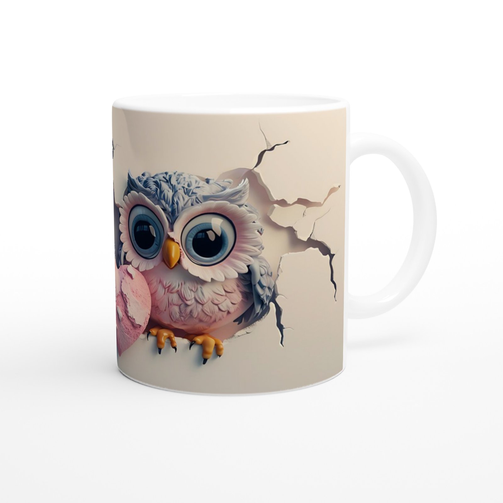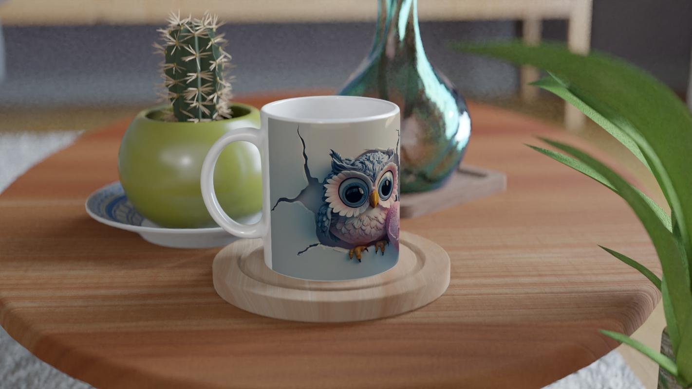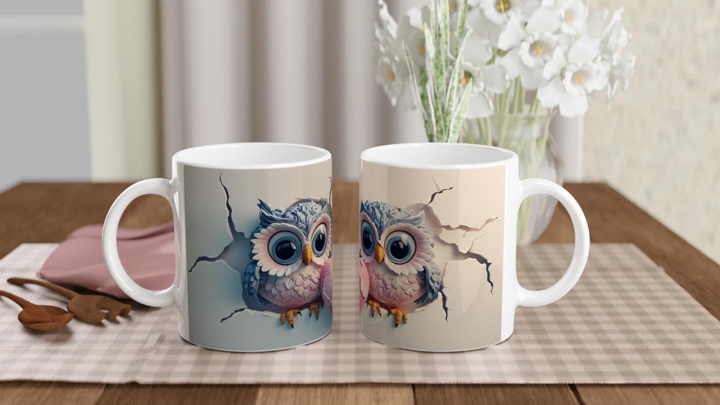 Kalpli Sevimli Baykuş Çifti Temalı Baskılı Kupa Bardak, çatlak duvar efektinden uzanan tatlı bakışlarla romantizmi ve neşeyi bir arada sunuyor. Aşkı simgeleyen bu tasarım, sevgililer için anlamlı ve eğlenceli bir hediye seçeneğidir.
