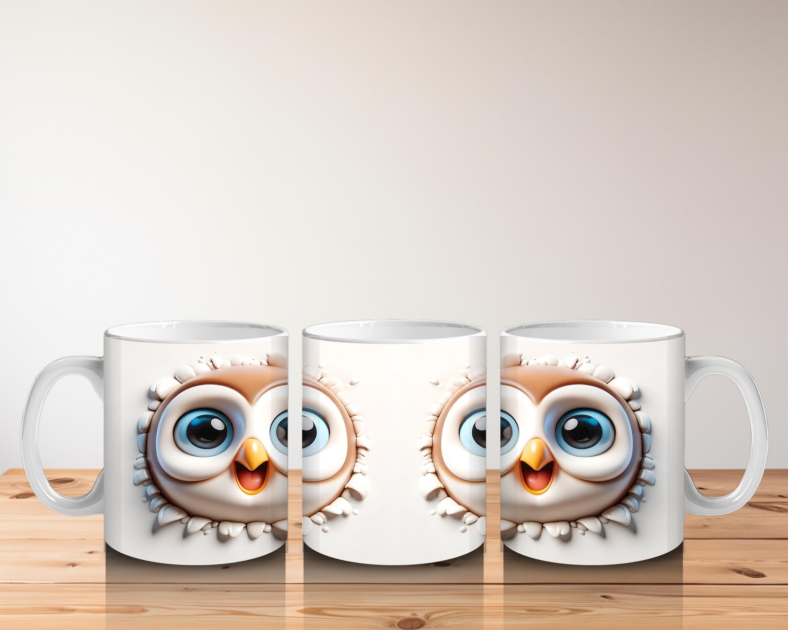 Çocuklara Sütdiren Gözleri Parıldayan Baykuş Çifti Kupa Bardak