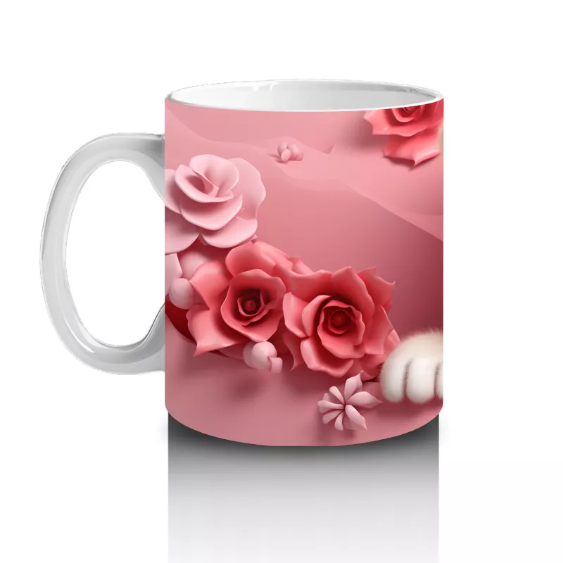 Pembe Bereli Sevimli Kedi Figürü – Baskılı Kupa
