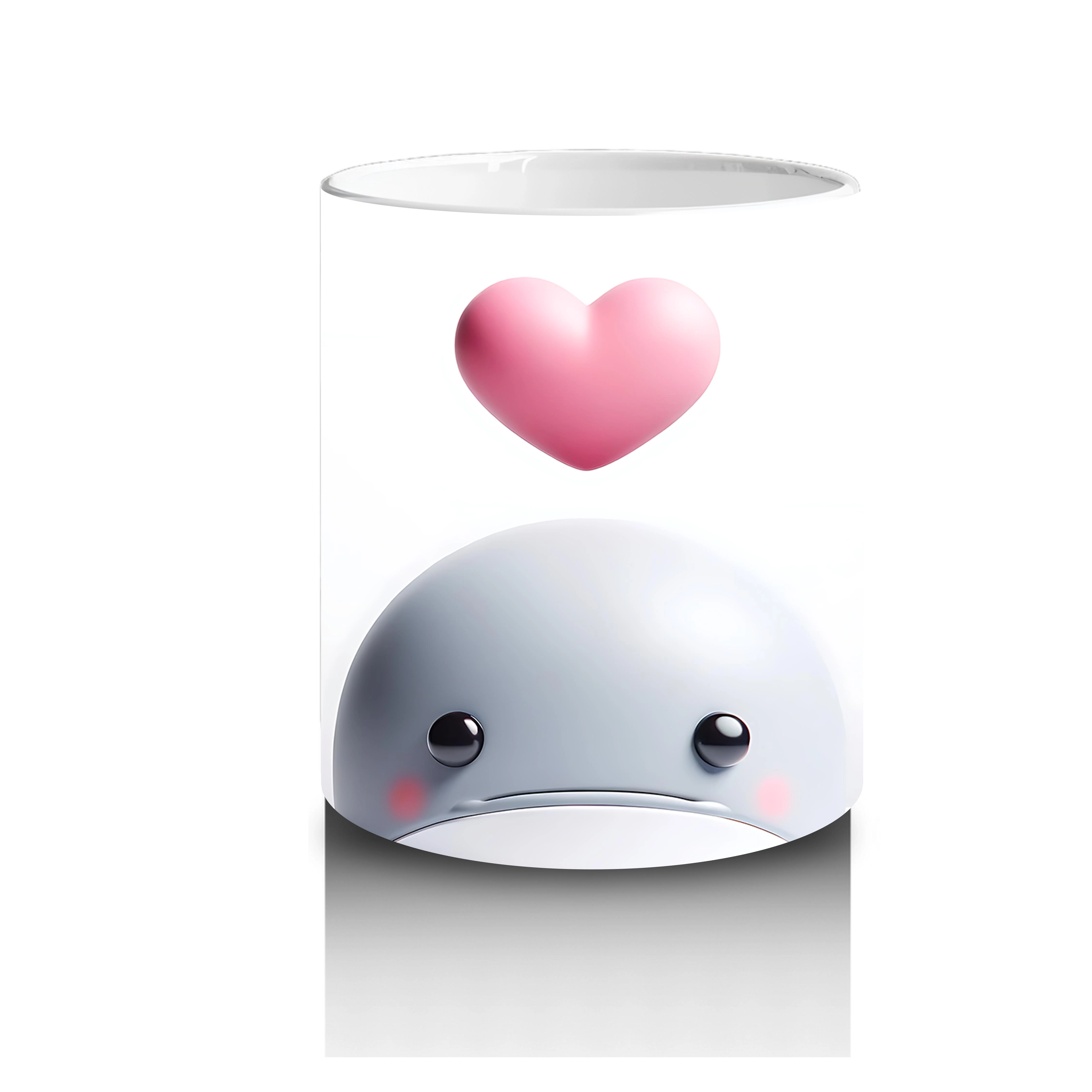 Elinde kalp balonuyla mutlu bir ifade yansıtan bu beyaz balina, romantik ve pozitif bir tasarım sunuyor. Aşk dolu ve şirin bir kahve anı yaşamak isteyenlere özel.