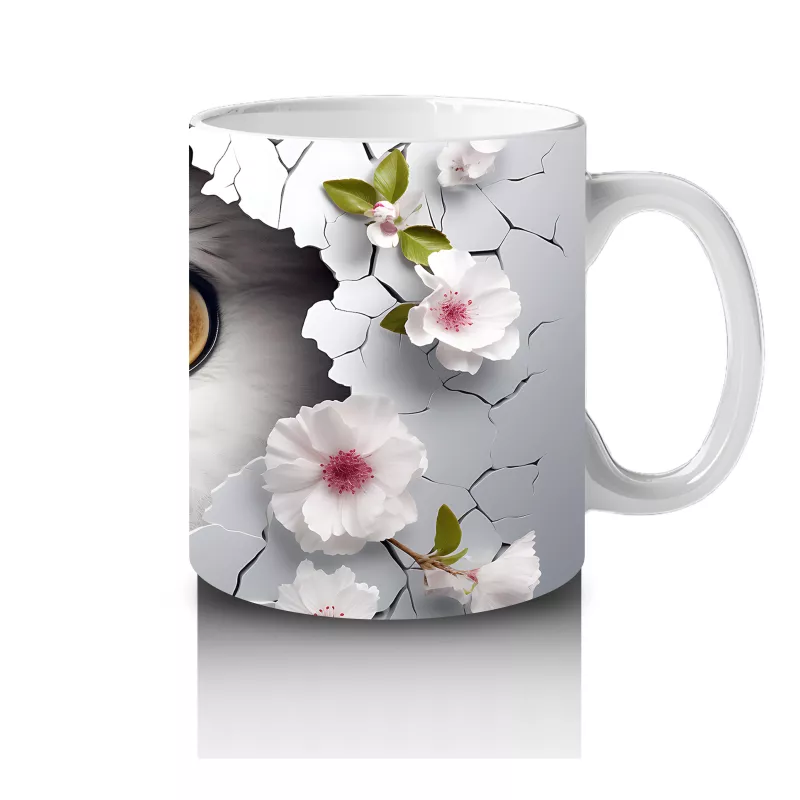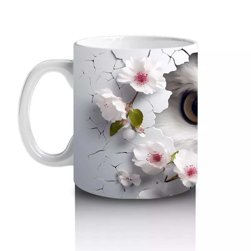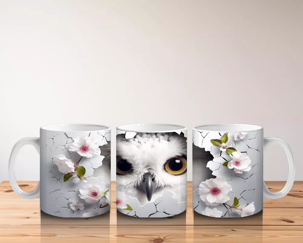Beyaz Çiçeklerle Süslenmiş Bilge Baykuş – Baskılı Kahve Kupası