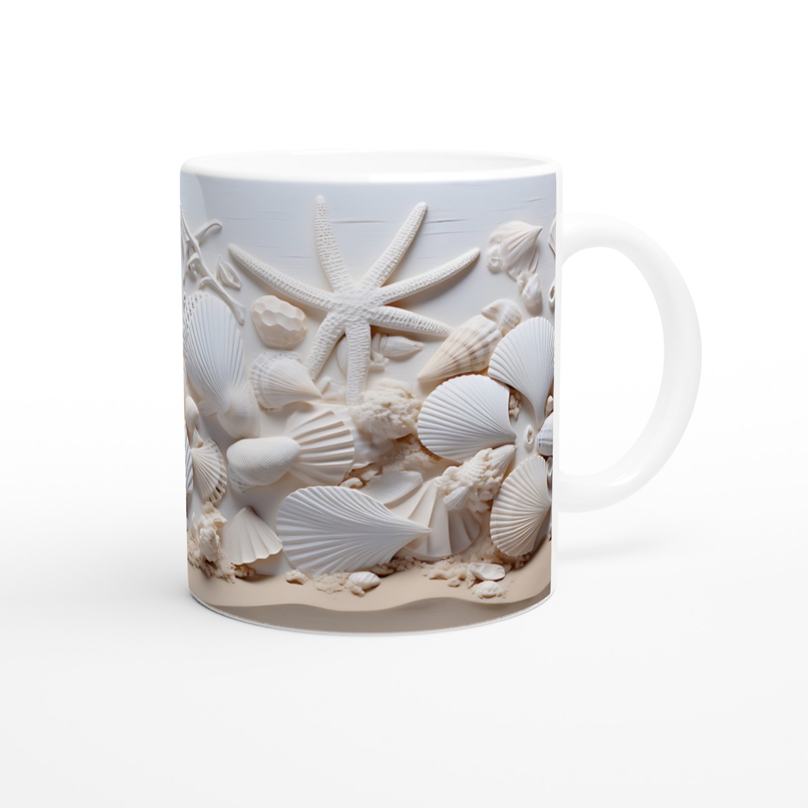 Beyaz Deniz Kabuğu Koleksiyonu Kupa Bardak, sahil esintisini evinize taşıyan zarif detaylarıyla minimal ve estetik sevenlere özel üretildi.