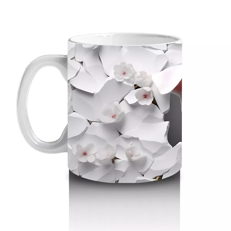 Çiçek Desenli Fon Üzerine Sevimli Beyaz Köpek – Baskılı Kupa