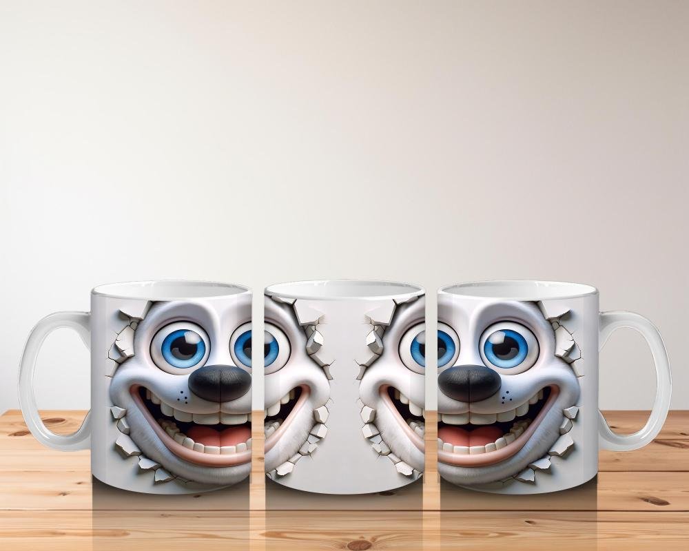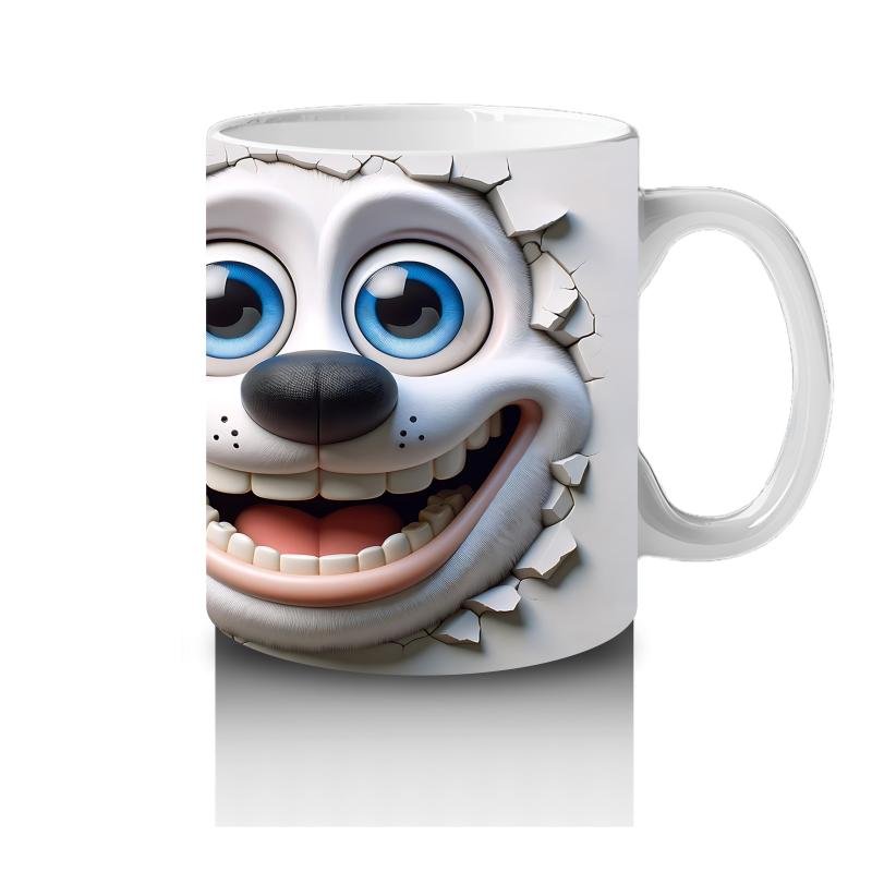 Çocuklara Sütü Sevdiren Neşeli Beyaz Yavru Köpek Kupa Bardak