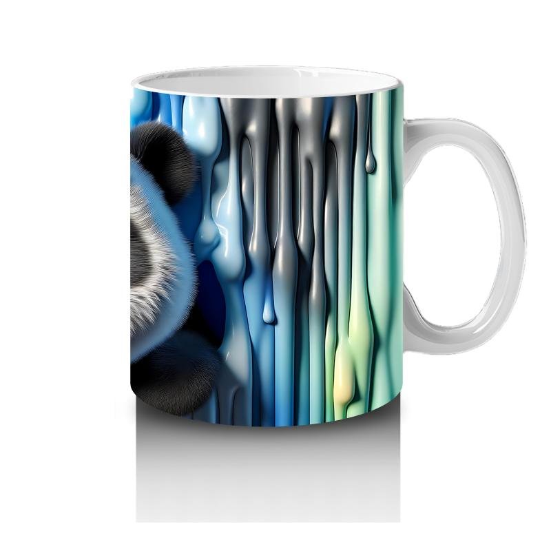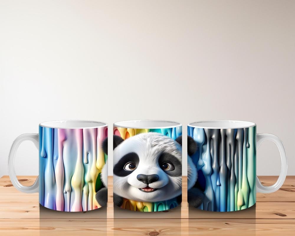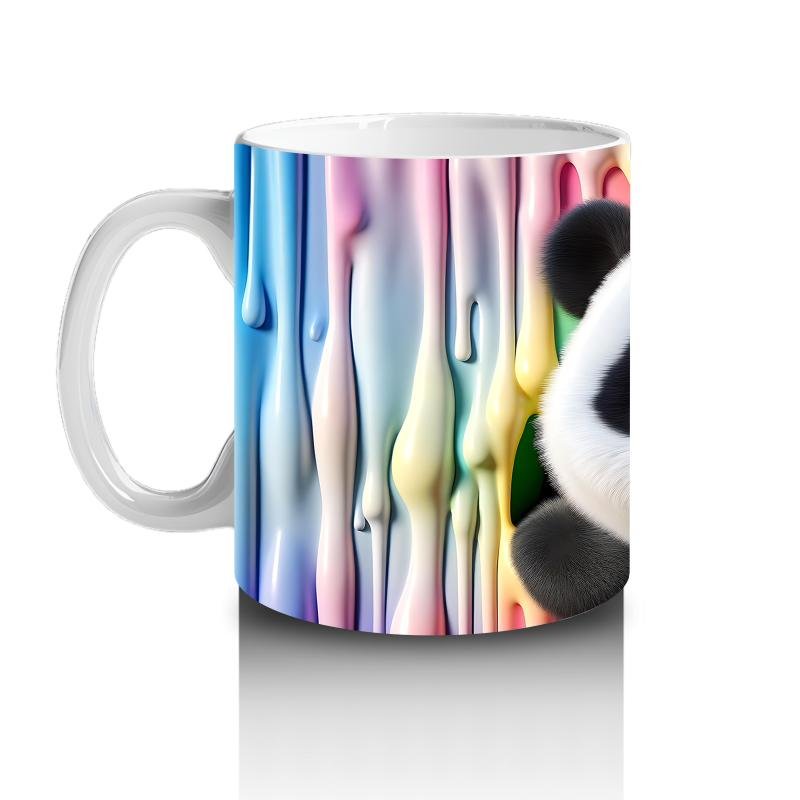 Çocuklara Sütü Sevdiren Renkli Boya Dalgaları Arasında Meraklı Panda Kupa Bardak