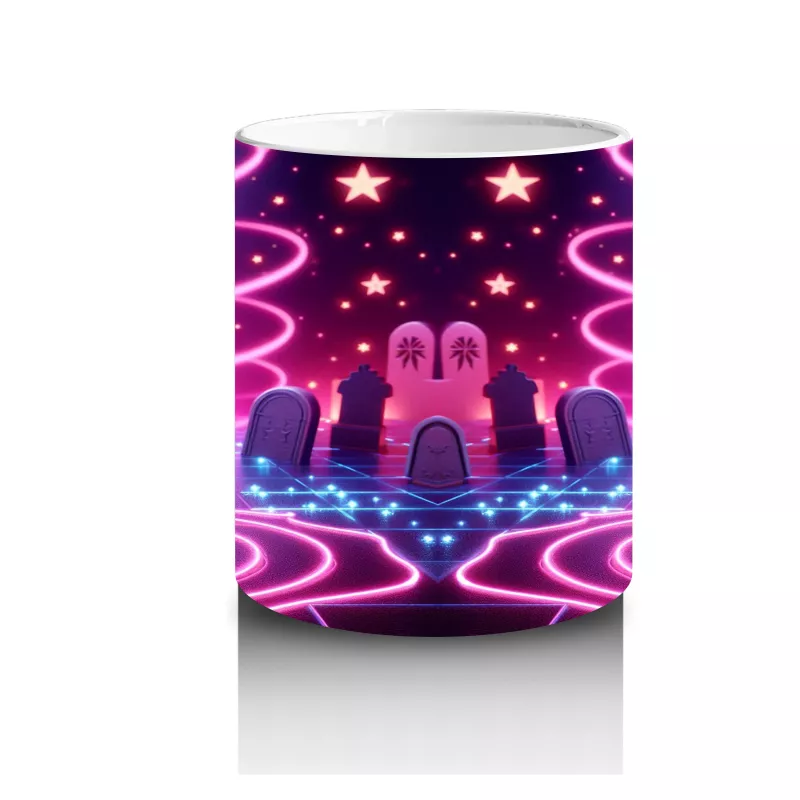 Neon renkli gotik cadı kedi baskısıyla dikkat çeken bu kupa bardak, Cadılar Bayramı ruhunu mutfağınıza taşıyan eşsiz bir koleksiyon parçasıdır.