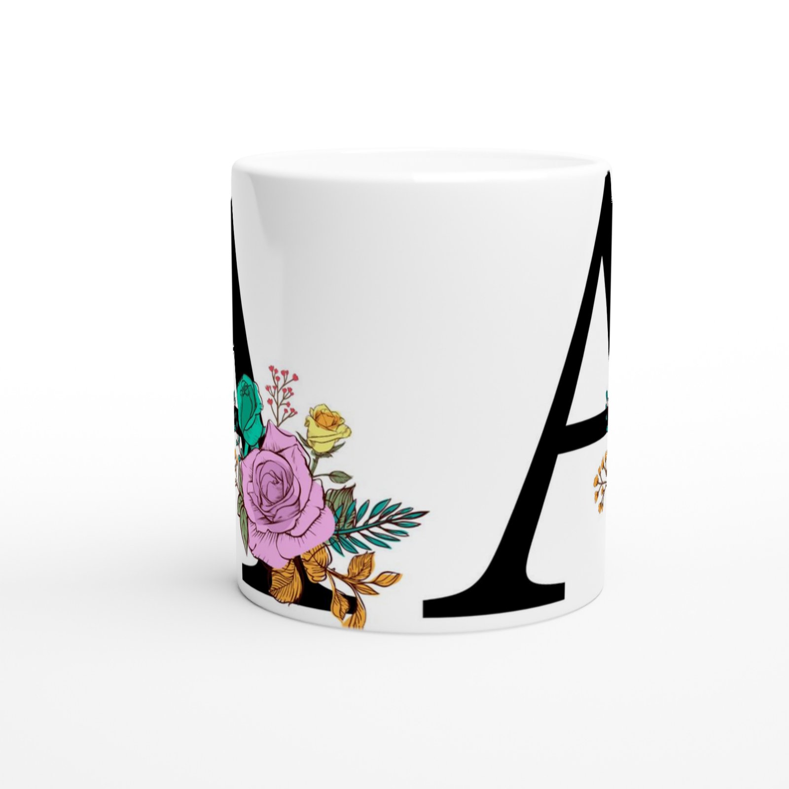 Renkli illüstratif detaylarla süslenen bu A harfi baskılı kupa bardak, zarif bir hediye seçeneği sunar.