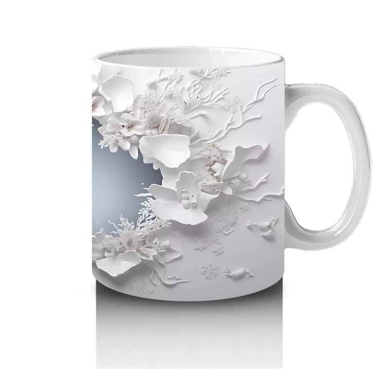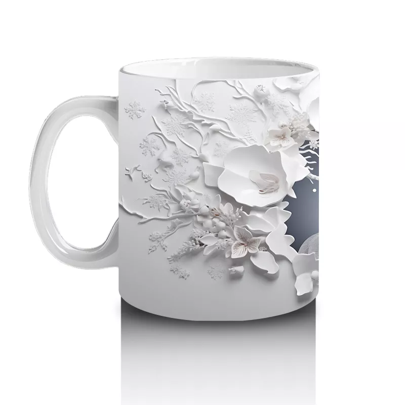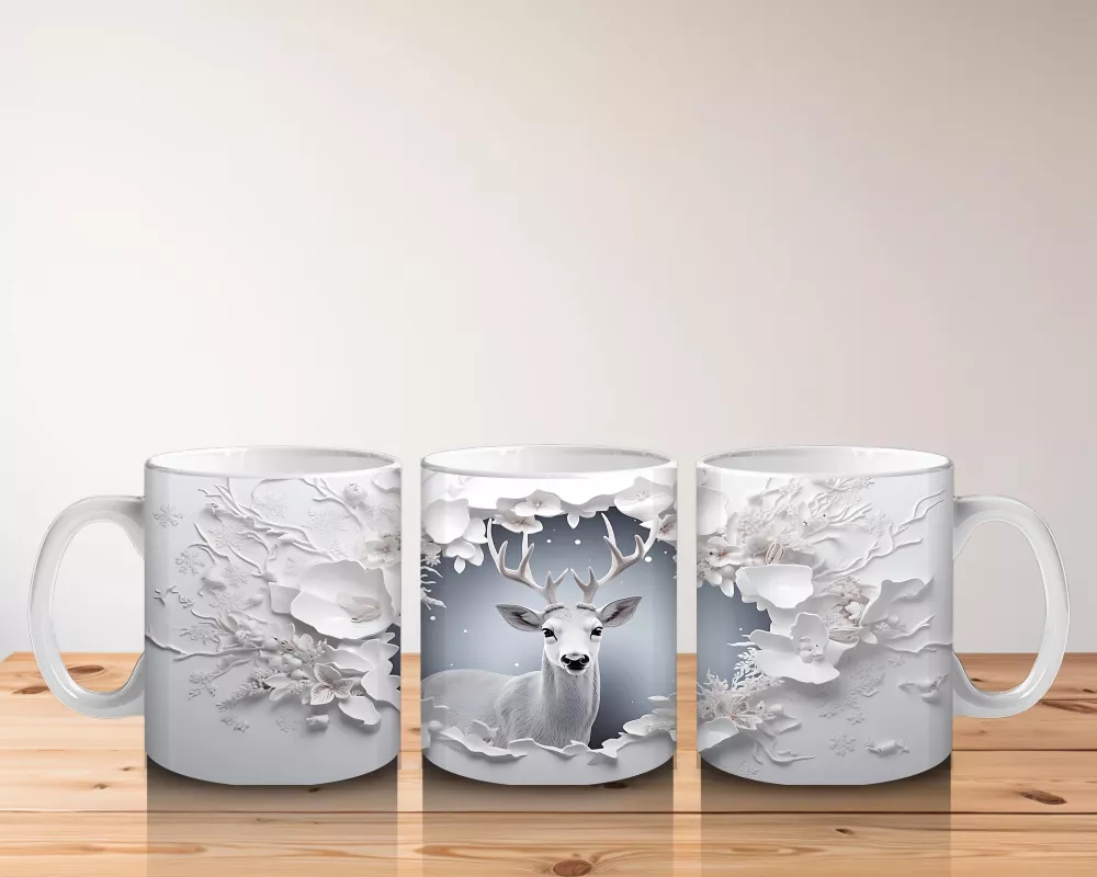 Beyaz Çiçeklerle Süslenmiş Çatlak Zeminden Bakan Geyik – Baskılı Kahve Kupası