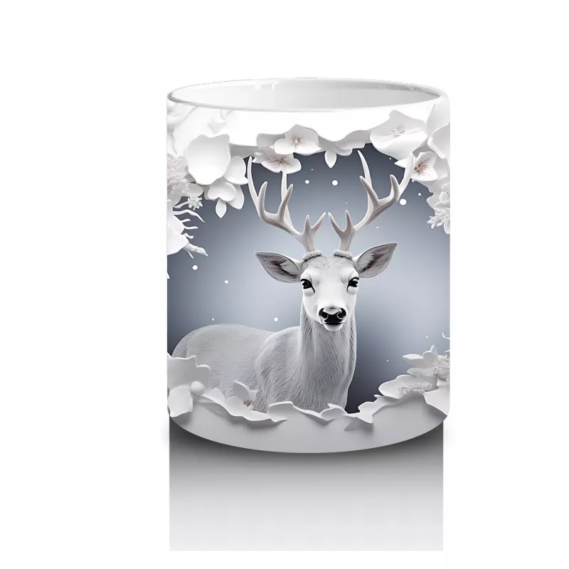 Beyaz çiçeklerle süslenmiş çatlak zeminden bakan geyik, doğa ve zarafeti bir arada sunuyor. Romantik ve doğal tasarımlar arayanlar için ideal bir seçenek.