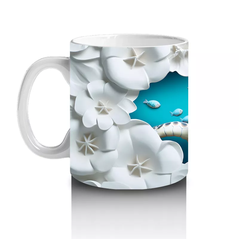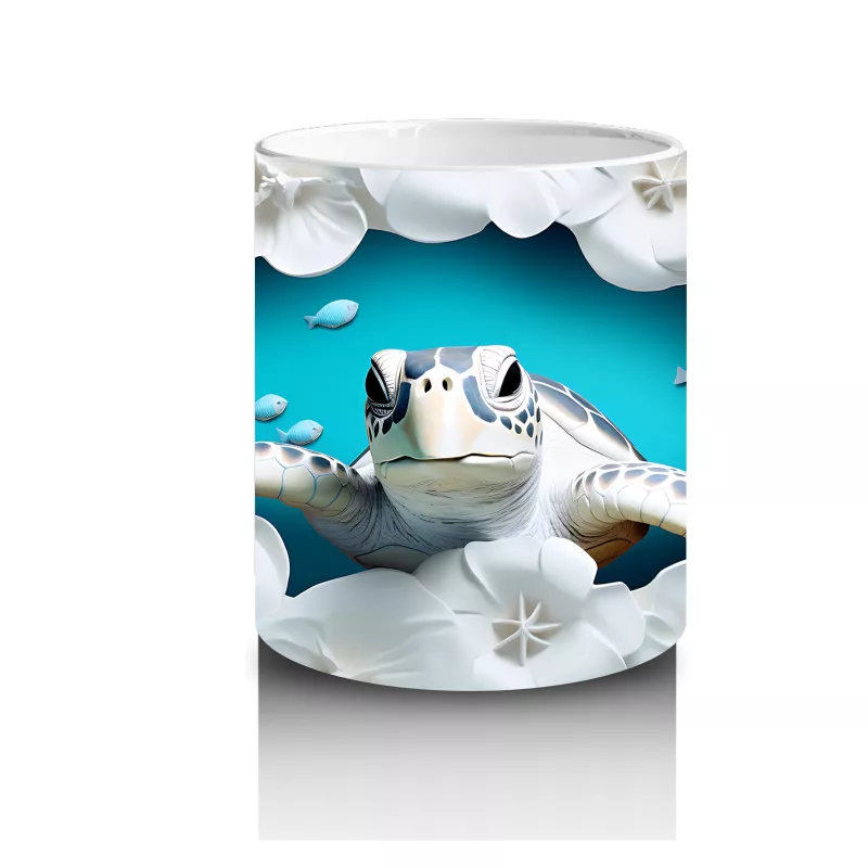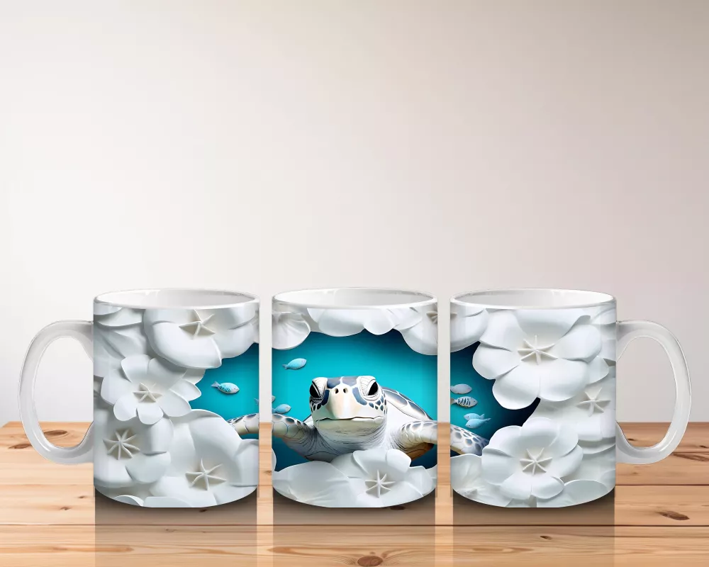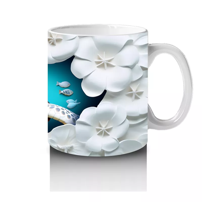 Beyaz çiçeklerle süslenmiş bu sevimli kaplumbağa tasarımı, sakinliği ve doğayla iç içe olmayı sevenlere hitap ediyor. Günlük kahve saatlerinize neşeli bir doğa dokunuşu getiriyor.