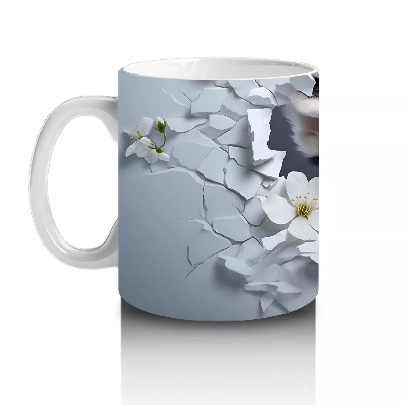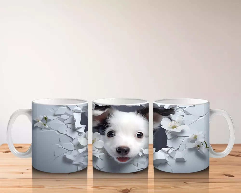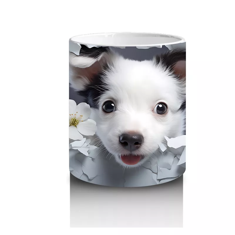Yasemin çiçeklerinin arasından bakan bu neşeli köpek figürü, sabah kahvenize mutluluk katmak için hazır. Doğa ve hayvan temalı hediye arayanlar için zarif ve anlamlı bir tercih.