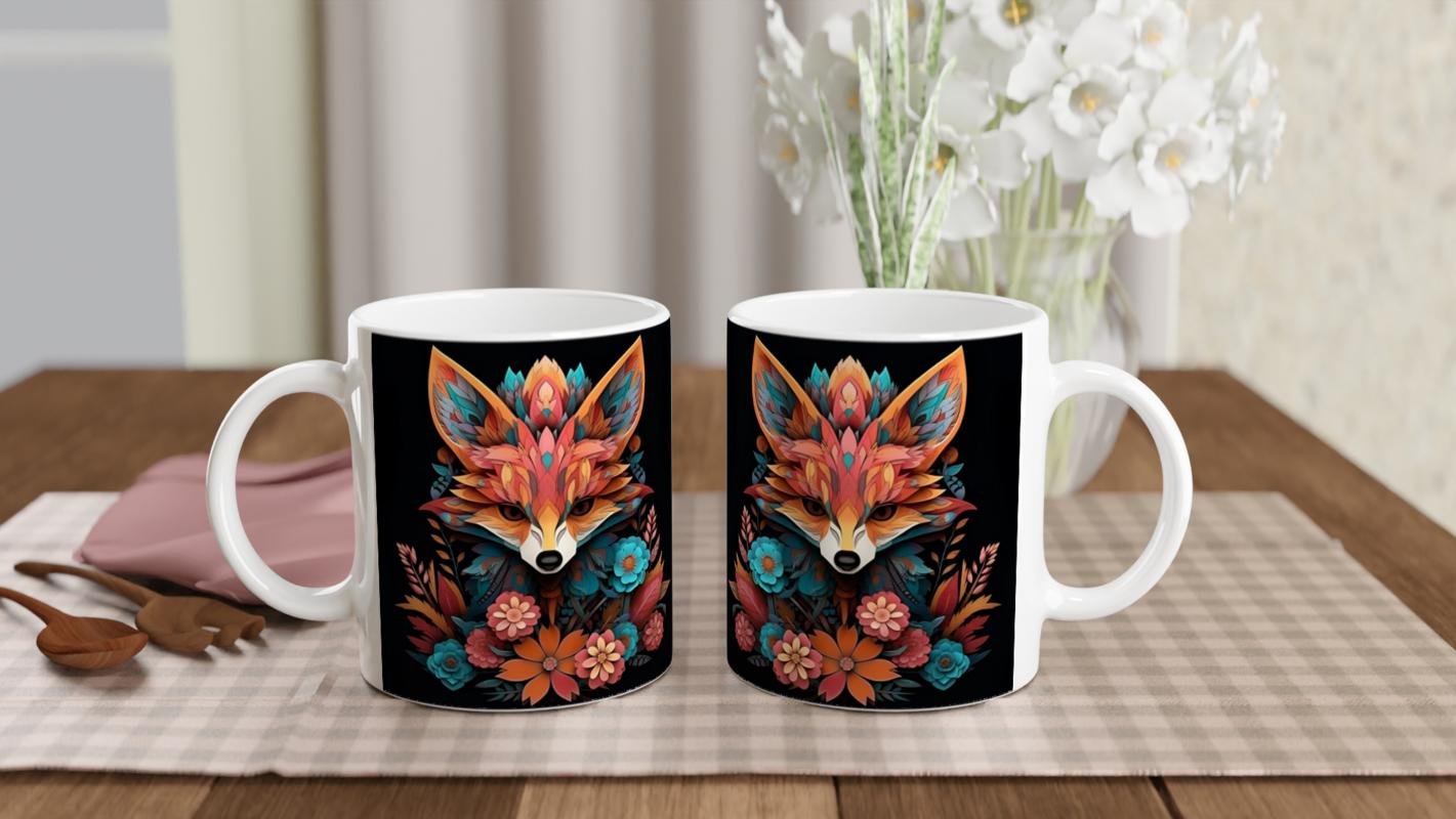 Cesur ve özgün bir stil arayanlar için birebir! Bu çiçeklerle bezenmiş renkli tilki figürlü kupa bardak,