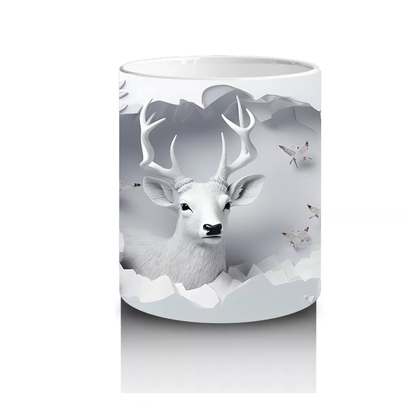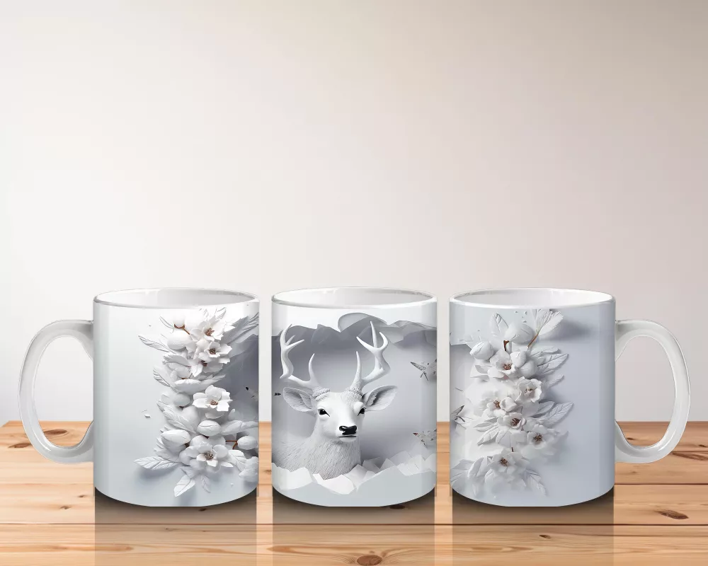Beyaz çiçekler ve ince dalların arasında sakin bakışlarıyla beliren bu geyik tasarımı, dinginlik ve zarafeti bir araya getiriyor. Göz yormayan tasarımıyla her yudumda doğayla bütünleşmek isteyenlere hitap ediyor.