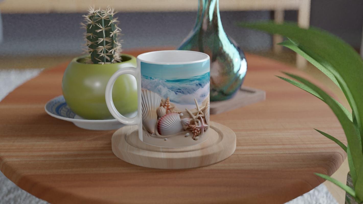 Doğal tonlar ve deniz temalı detaylarla öne çıkan bu özel kupa bardak, yaz günlerinin ferahlığını sofranıza getiriyor.