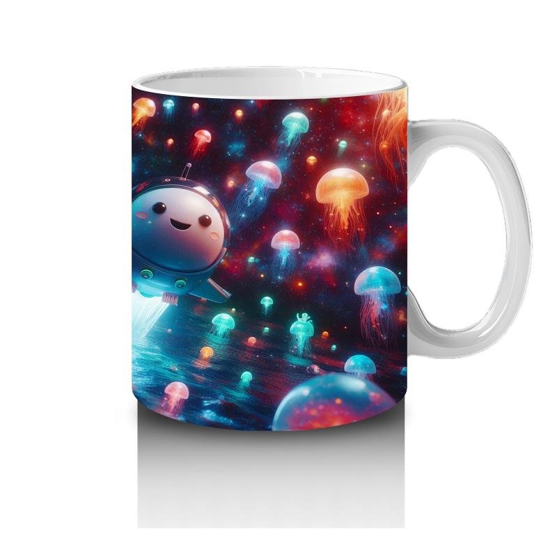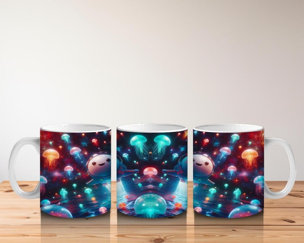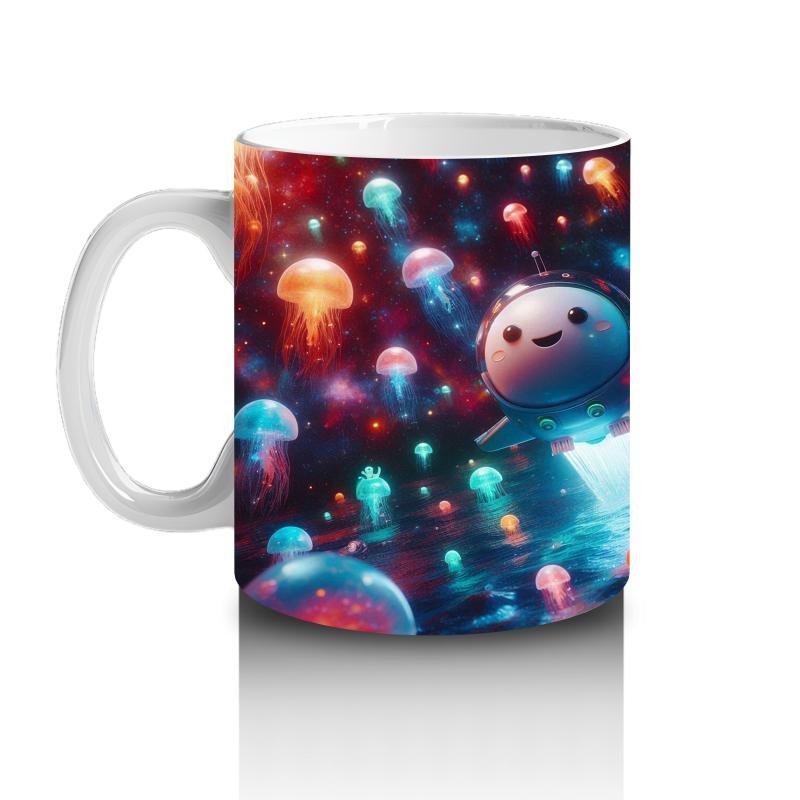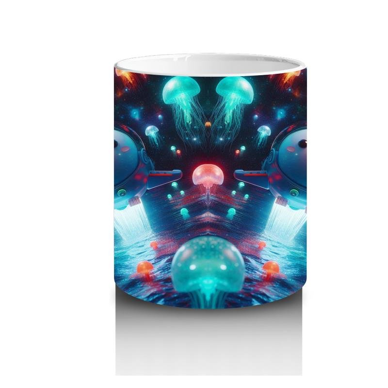 Çocuklara Sütü Sevdiren Işık Saçan Denizaltı Roketleri ve Denizanası Dünyası Desenli Kupa Bardak
