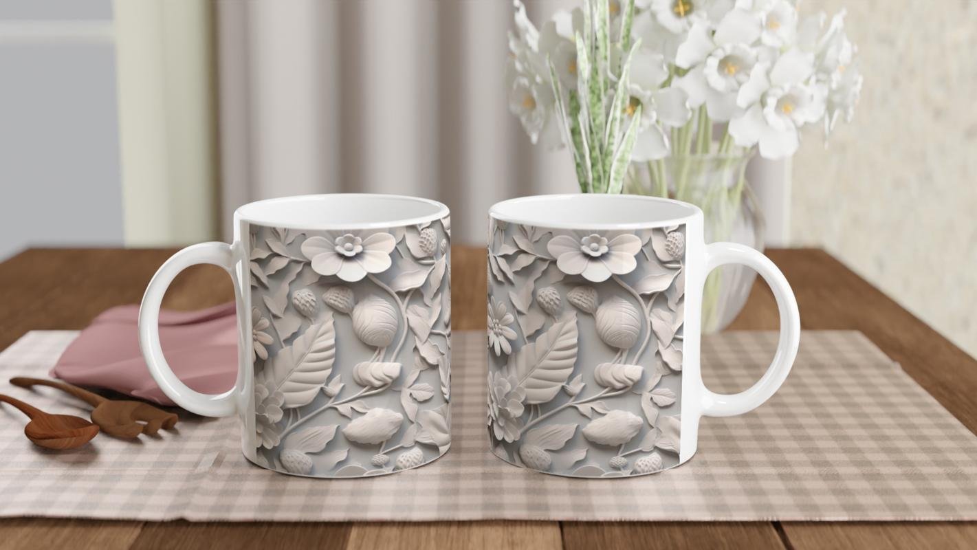 Bitkisel formlarla bezeli bu kupa bardak, sade tasarımıyla günlük kullanımda şıklığı ön plana çıkarır.