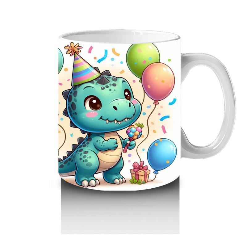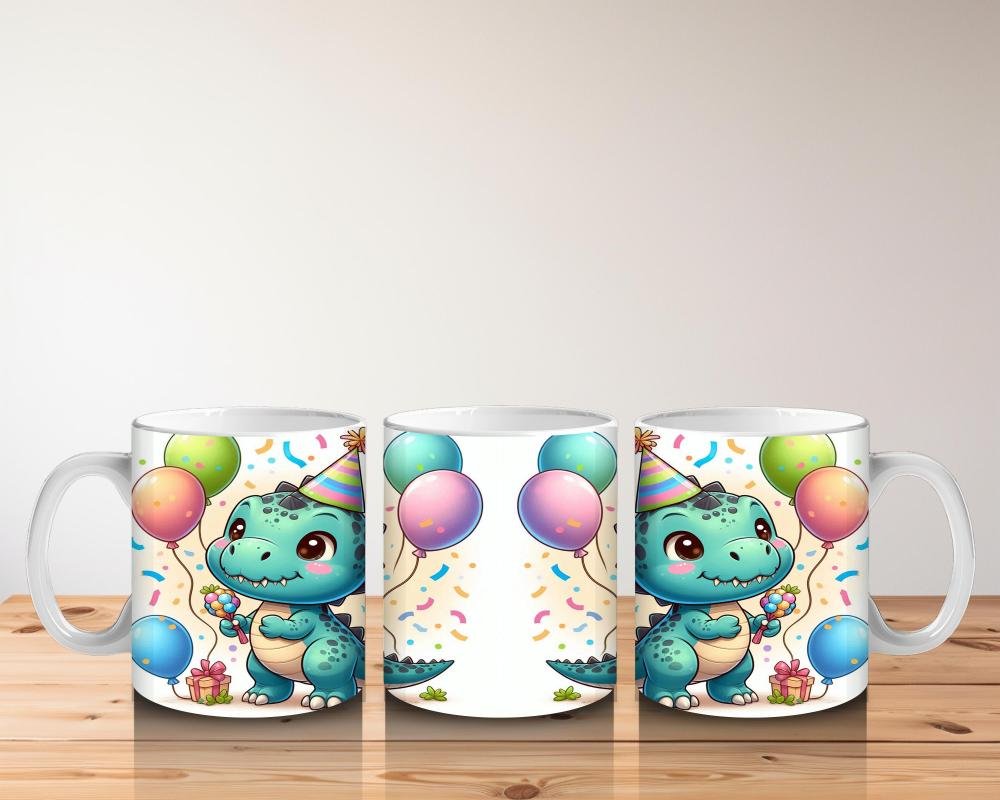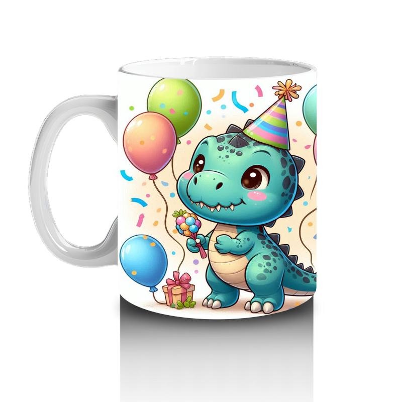 Çocuklara Sütü Sevdiren Doğum Günü Şapkalı Balonlu Dinozor Desenli Kupa Bardak
