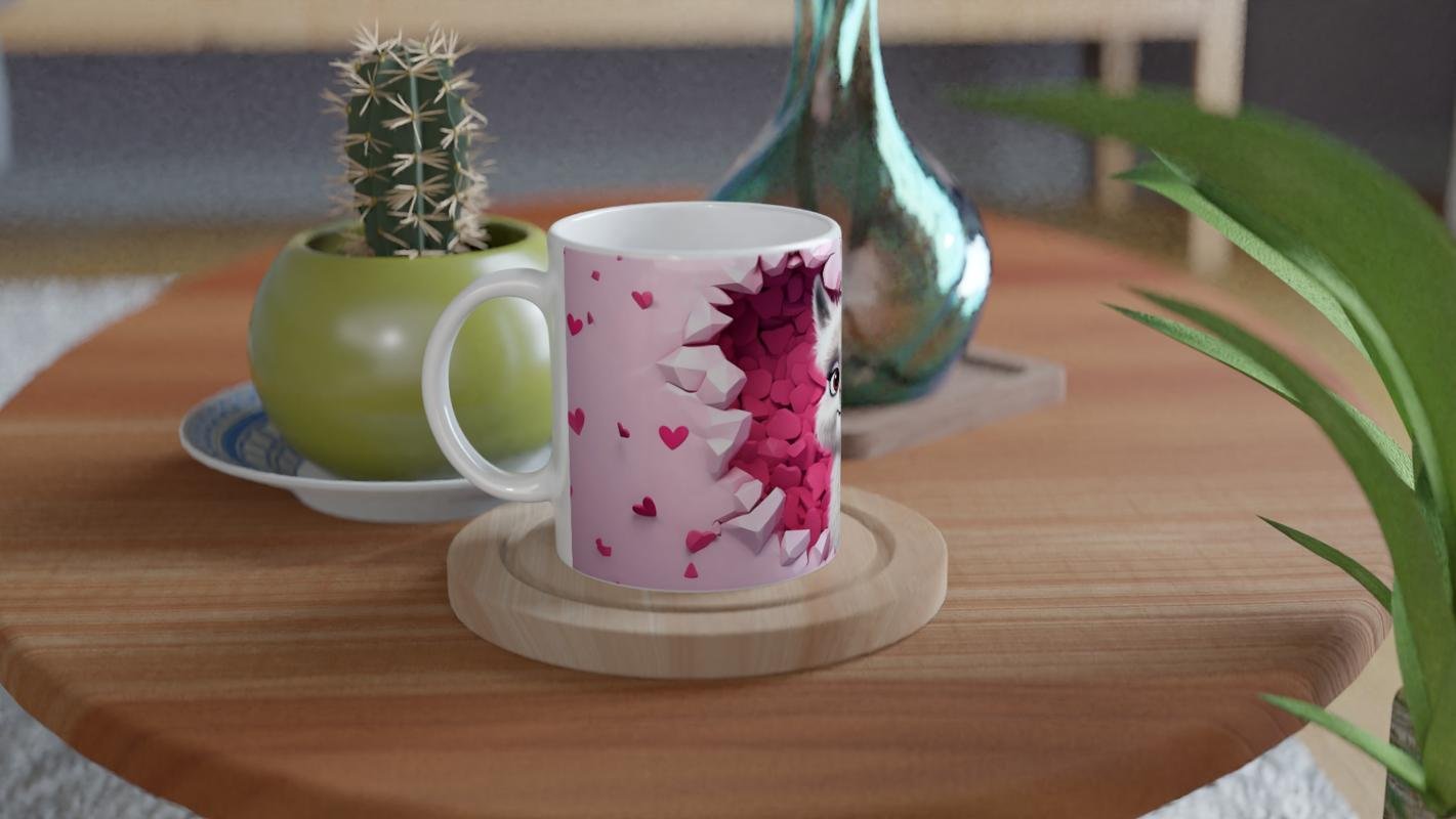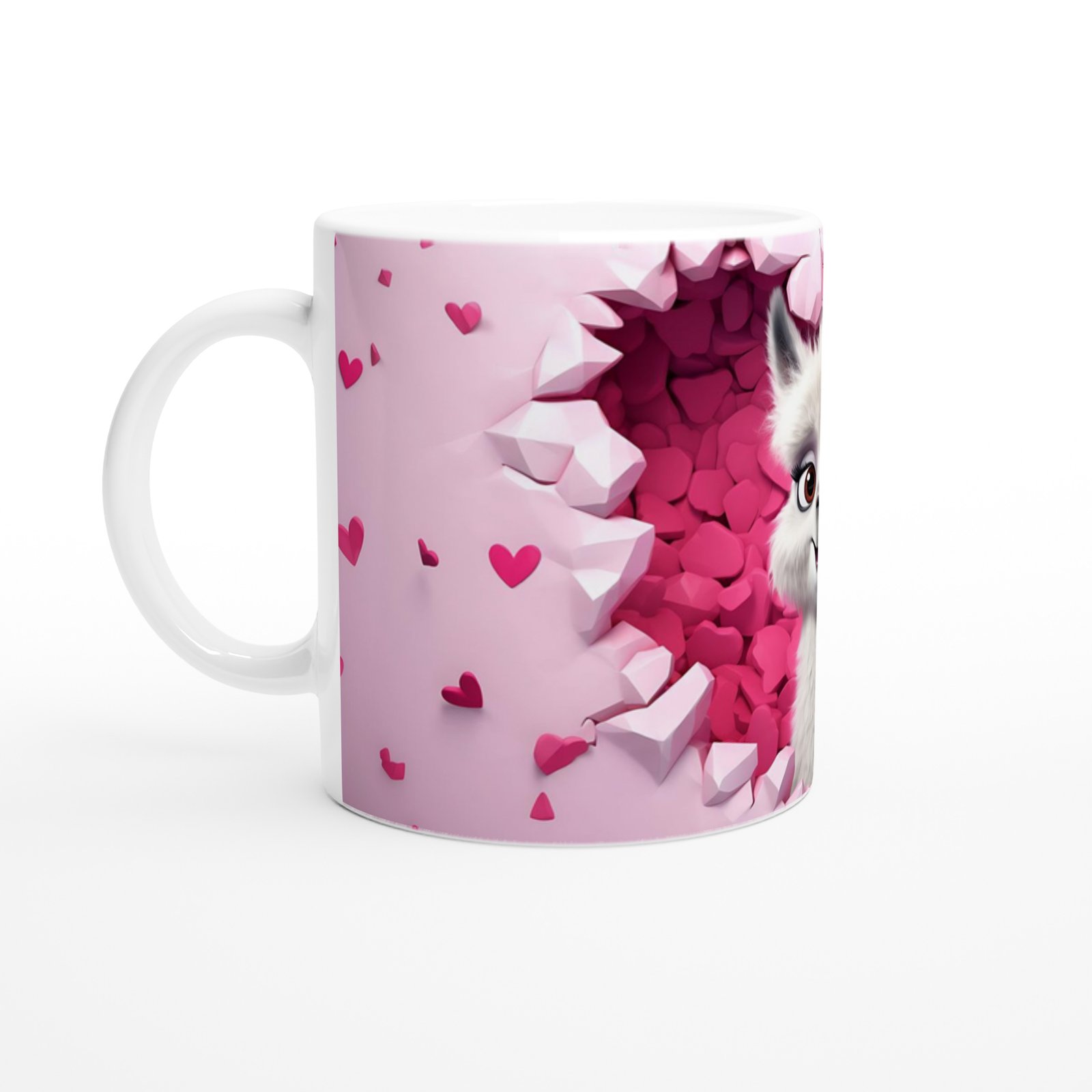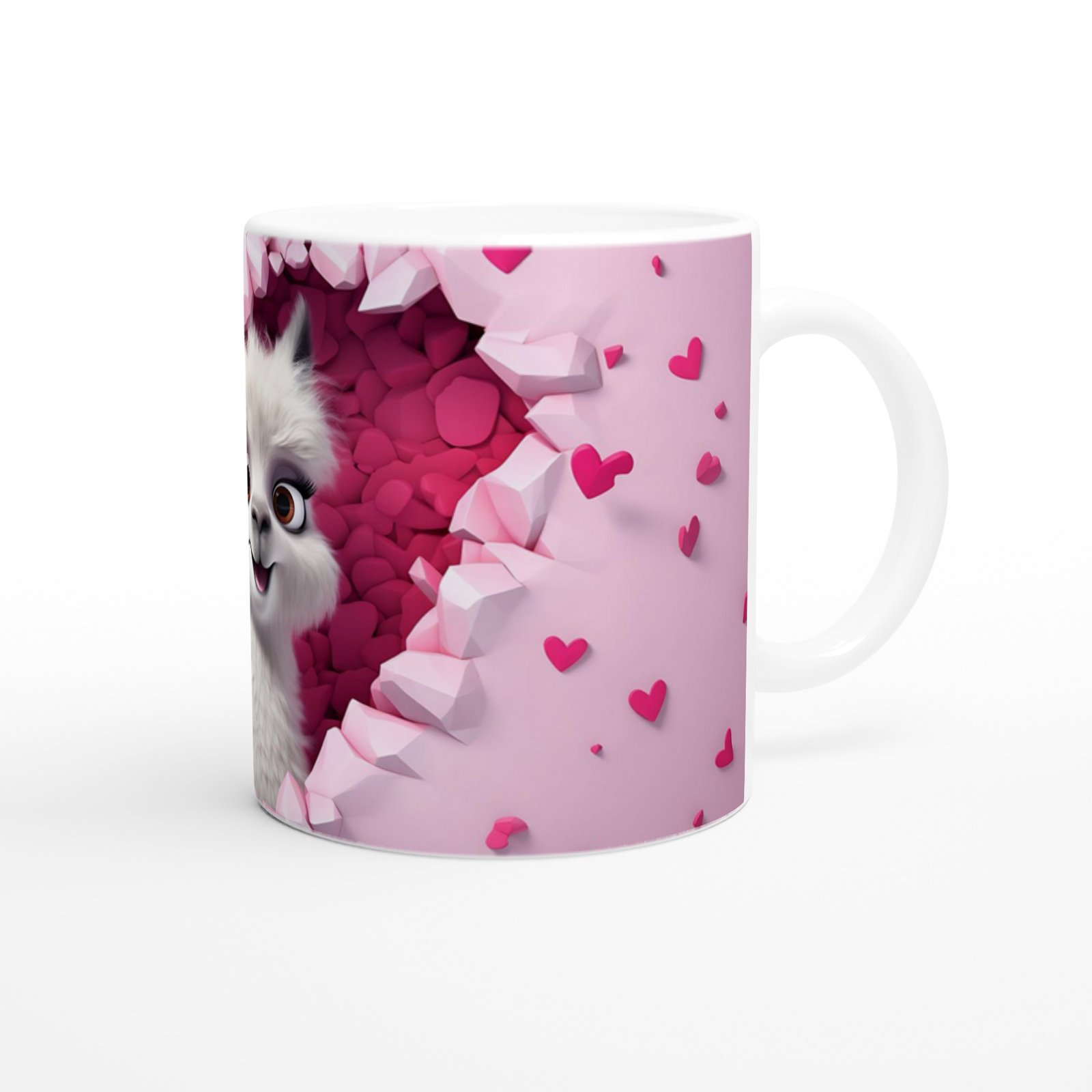 Kalpli Duvar Arasından Bakan Alpaka Temalı Baskılı Kupa Bardak, pembe kalplerle dolu eğlenceli tasarımıyla hem neşeli hem de romantik bir hava sunar. İçten bir gülümseme arayanlar için sıcak bir tercih.