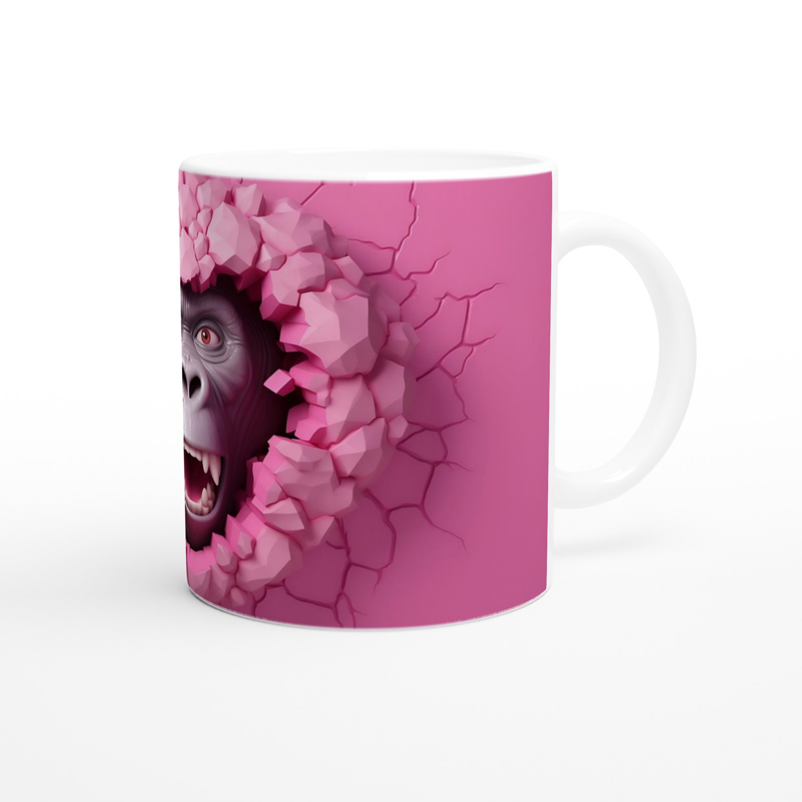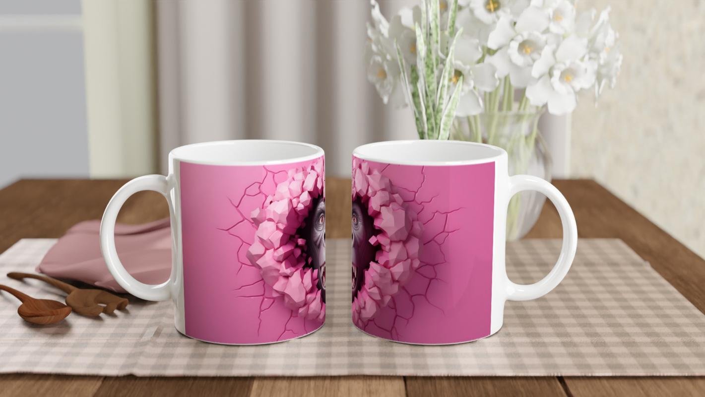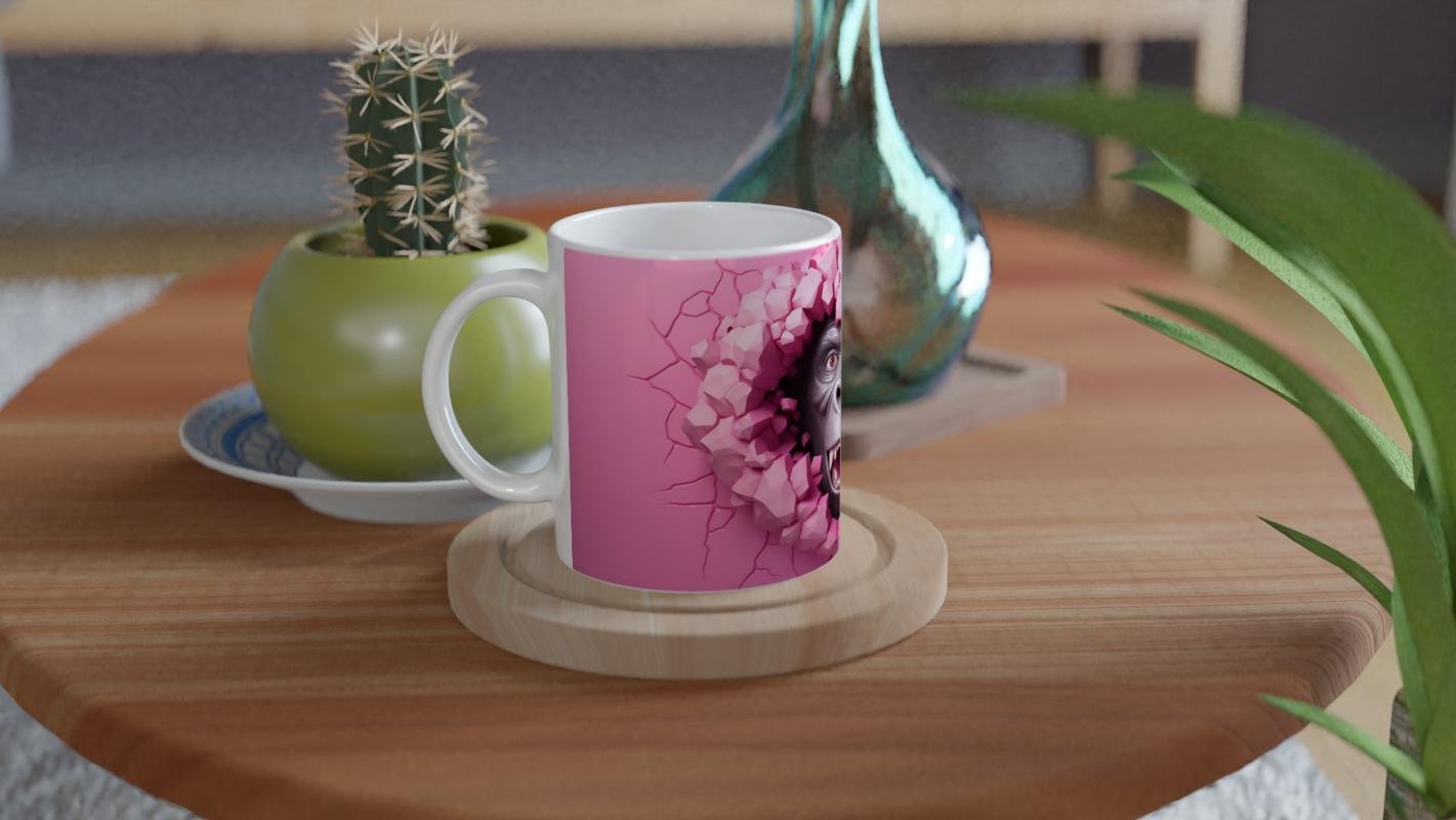 Canlı pembe duvarı parçalayıp öfkeyle dışarı bakan bu goril figürü, enerjisi yüksek bir tasarım arayanlar için birebir. Cesur tarzı ve mizahi havasıyla bu kupa, sıradışı hediye seçenekleri arasında öne çıkıyor.