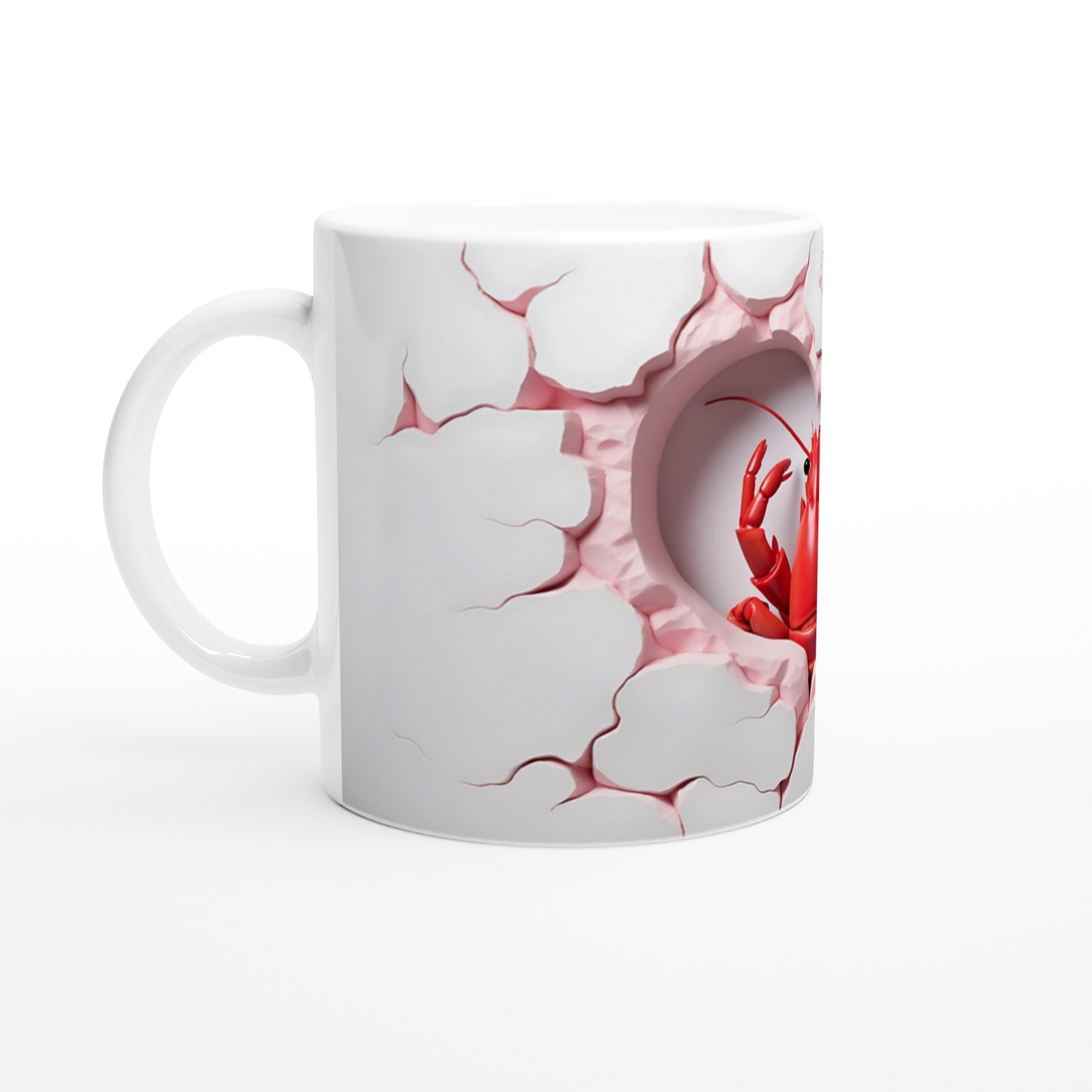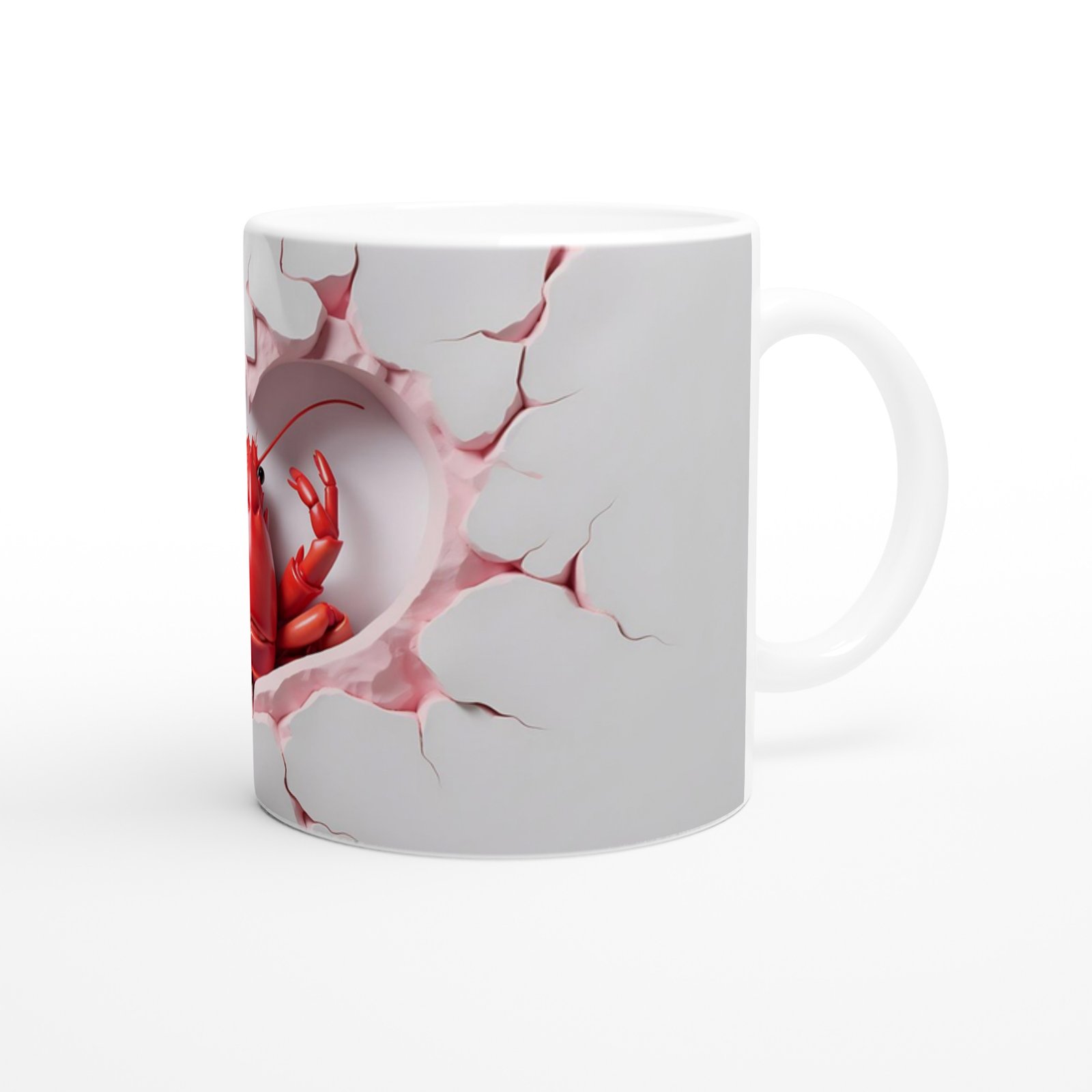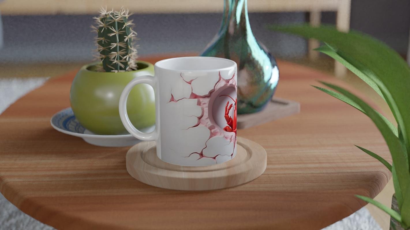 Kalp şeklinde kırılmış beyaz duvar efekti içerisinden çıkan kırmızı ıstakoz figürüyle tasarlanmış bu kupa, eğlenceli ve cesur tarzıyla fark yaratıyor. Hem deniz temalı ürünleri sevenlere hem de koleksiyonculara özel bir hediye alternatifi.