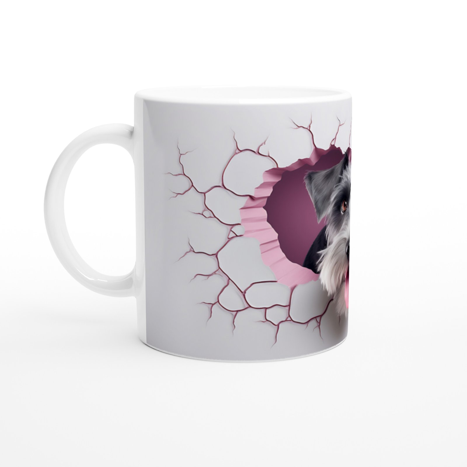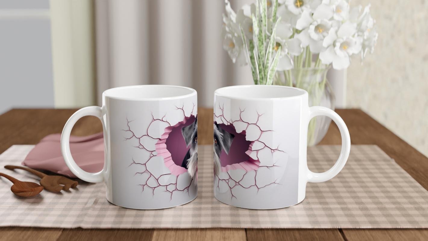 Kalp şeklinde çatlamış duvar efektinden neşeyle bakan sevimli terrier köpeği, pembe detaylar ve gri tonların uyumuyla şirin ve modern bir görünüm sergiliyor. Gülümseten bu tasarım, evcil hayvan severler ve köpek tutkunları için harika bir hediye seçeneği.