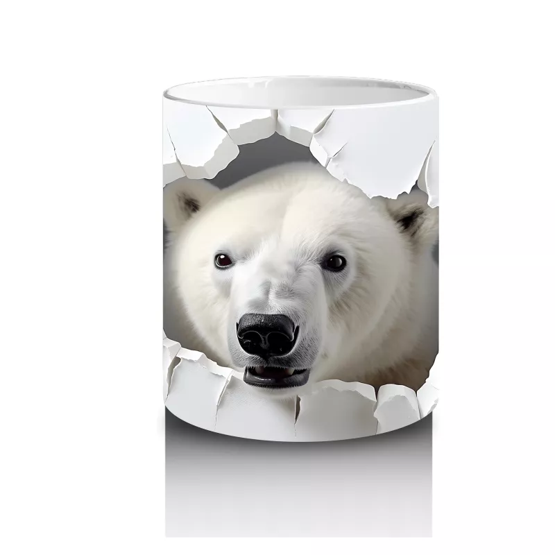 Gücün ve soğuğun sevimli yüzü! ❄️🐻❄️ Kutup ayısının kırık duvardan çıkan etkileyici illüstrasyonu, güçlü karakterler için özgün bir kupa seçimi.