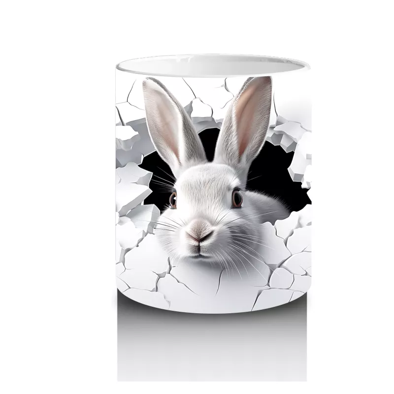 Meraklı gözlerle gelen bir sürpriz! 🐰 Duvarı delen bu eğlenceli tavşan tasarımıyla kupanızda esprili bir tarz yakalayın. Her yudumda gülümseme garantili!