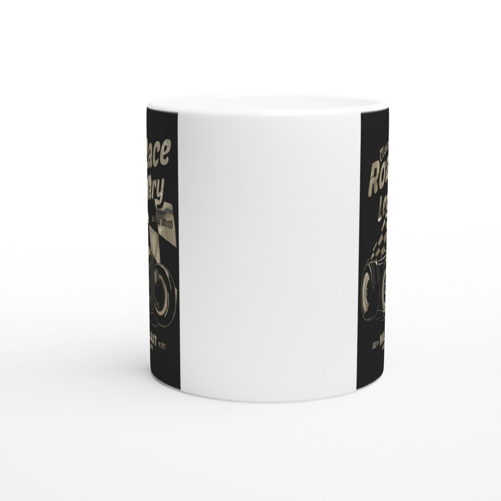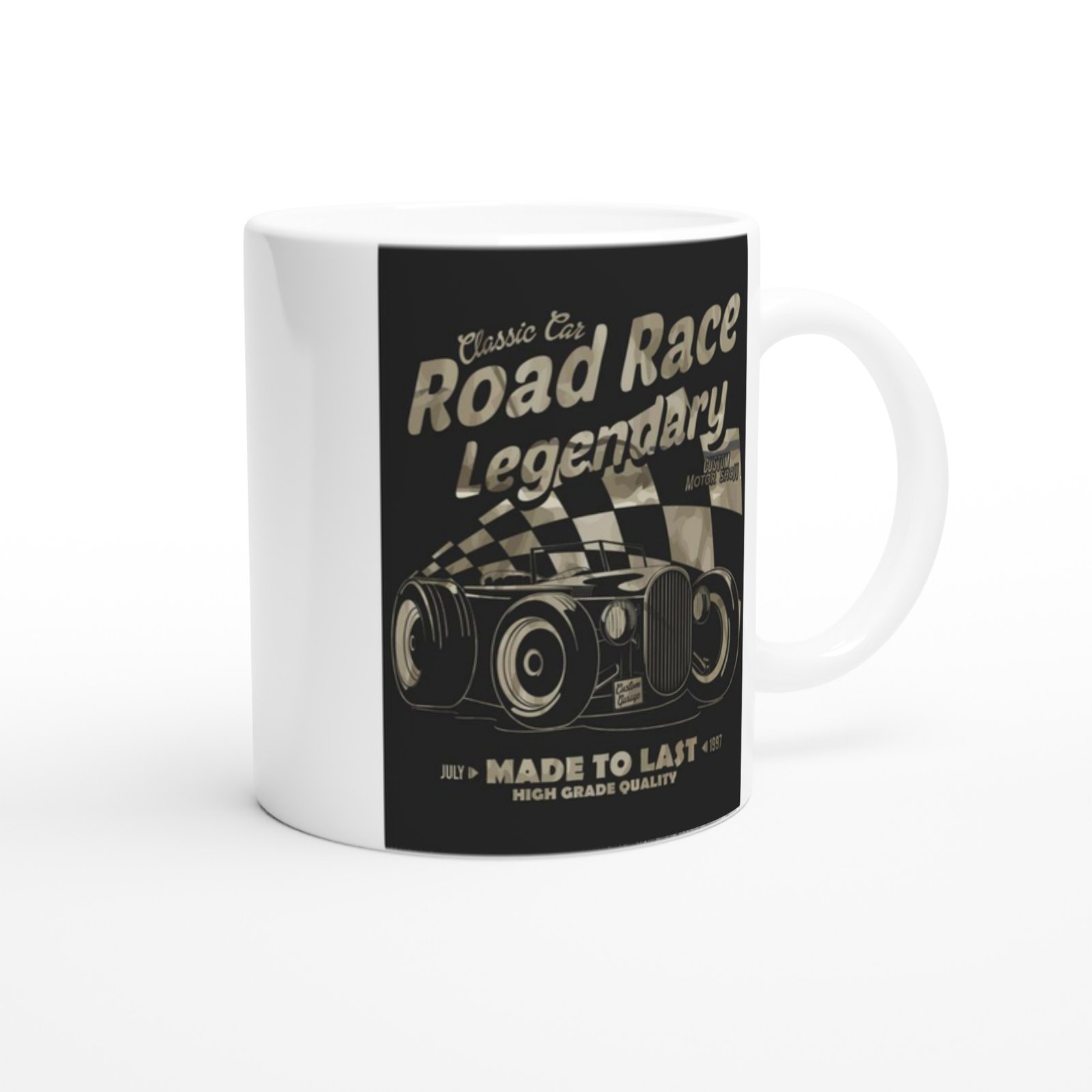 Şampiyonluk bayrağı ve vintage araç illüstrasyonlarıyla süslenmiş bu kupa bardak, koleksiyon değeri taşıyan özel bir parçadır.