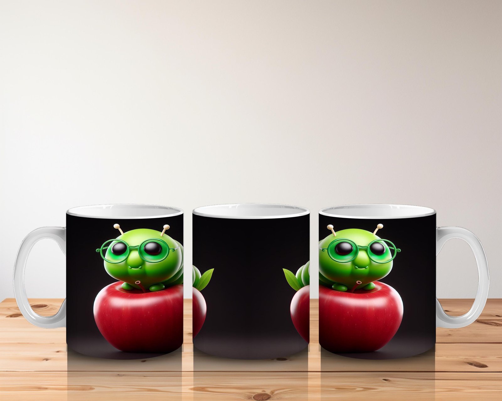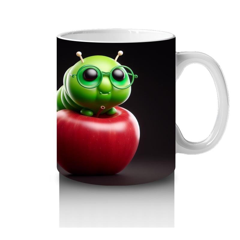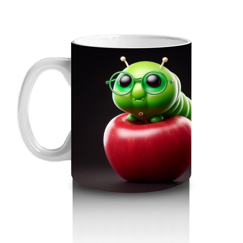 Çocuklara Sütü Sevdiren Gözlüklü Elma Kurdu Desenli Kupa Bardak