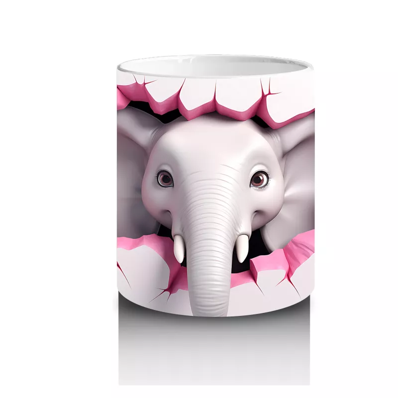 Kalpli arka planla tamamlanan bu tatlı fil maskot, çocukların ve içindeki çocuğu yaşatanların favorisi olmaya aday. Neşeli ve duygusal bir atmosfer yaratmak isteyenler için mükemmel bir kupa.