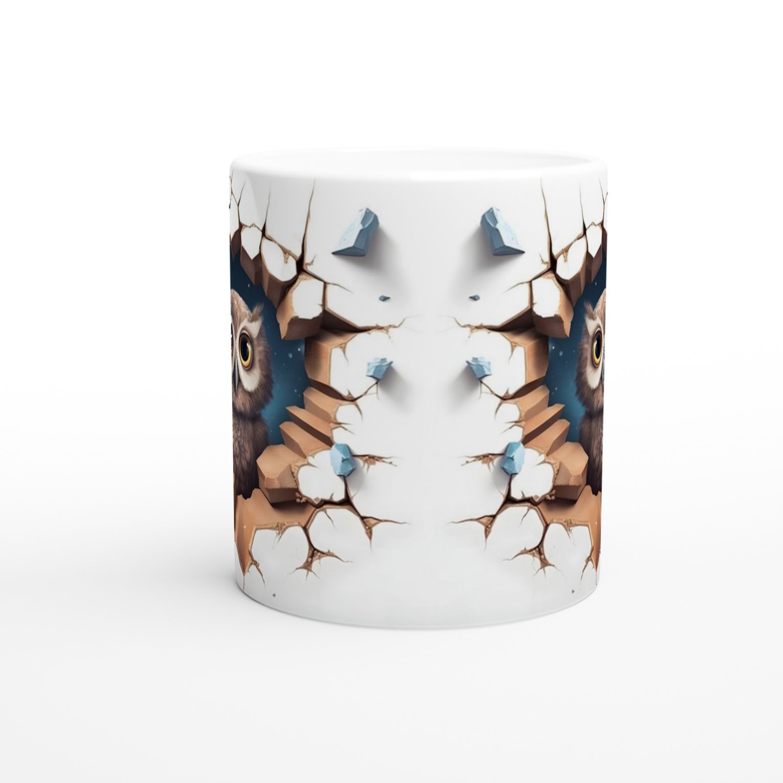 Duvardan dışarı bakan tatlı bir baykuşun yer aldığı bu baskılı kupa bardak, mistik havası ve detaylı