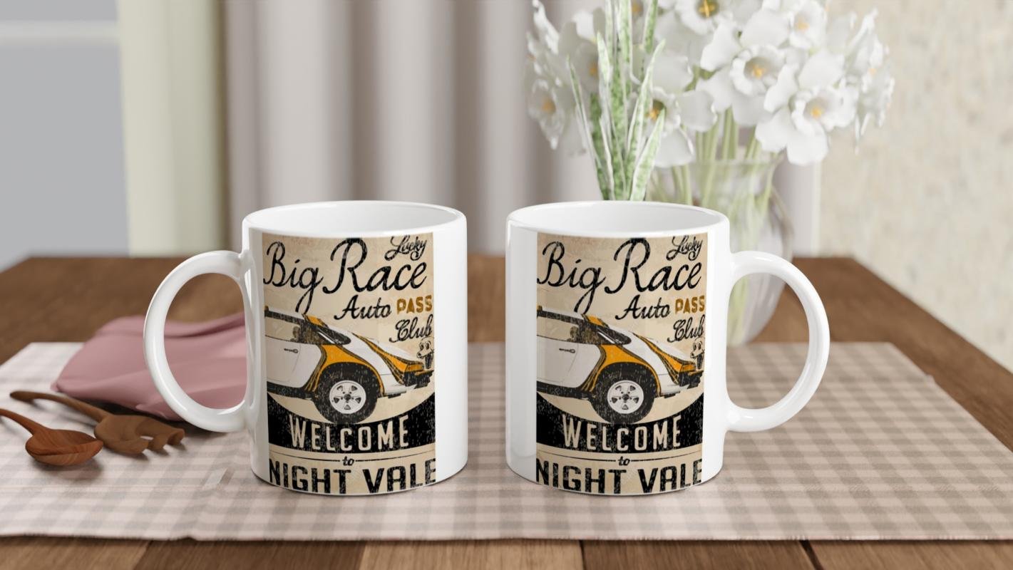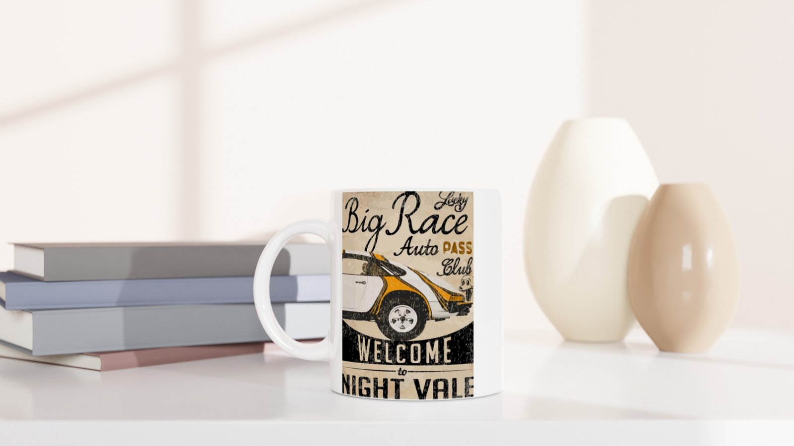 Big Race Auto Pass Club temalı bu retro kupa bardak, yarış tutkunlarının nostaljiyle harmanlanmış tarzını yansıtıyor.