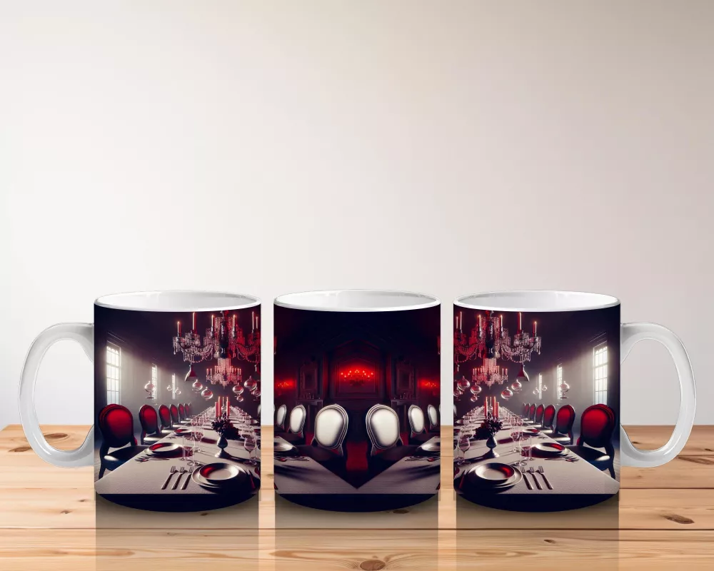 Gotik saray içinde kırmızı mum detaylarıyla tasarlanan bu kupa bardak, Cadılar Bayramı sofralarınıza karanlık ve gizemli bir atmosfer katar.