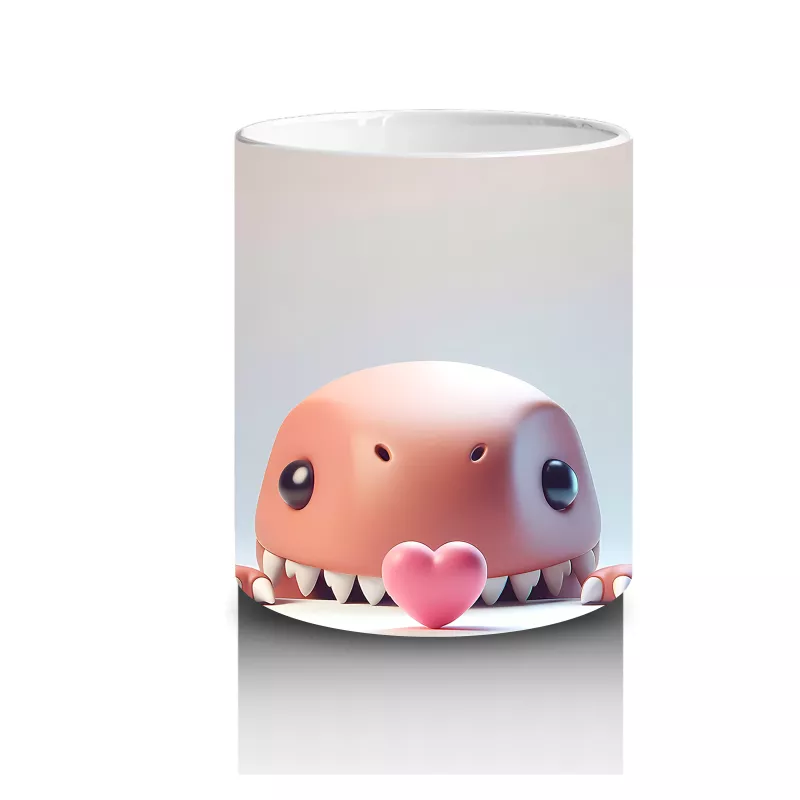 Kalpli gözlükleriyle poz veren bu tatlı domuzcuk, eğlenceli ve neşeli bir atmosfer yaratıyor. Mizahi dokunuşları sevenler için özgün ve şirin bir kupa tasarımı.