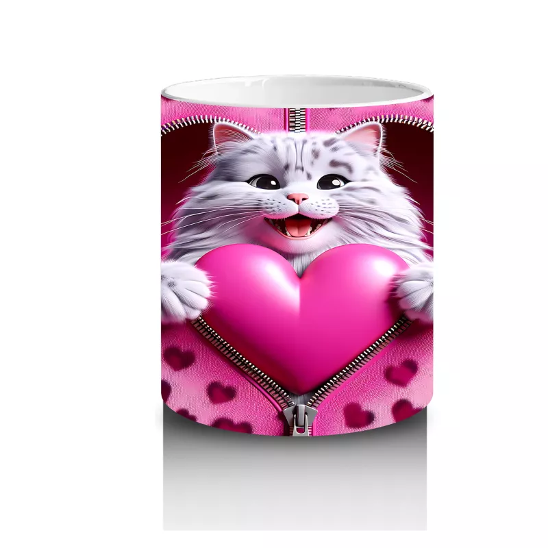 Yumuşacık kalpli yastığına sarılmış gri kedi figürü, hem huzur hem de sevgi dolu bir atmosfer yaratıyor. Kedi severler için duygusal ve sıcak bir tasarım tercihi.